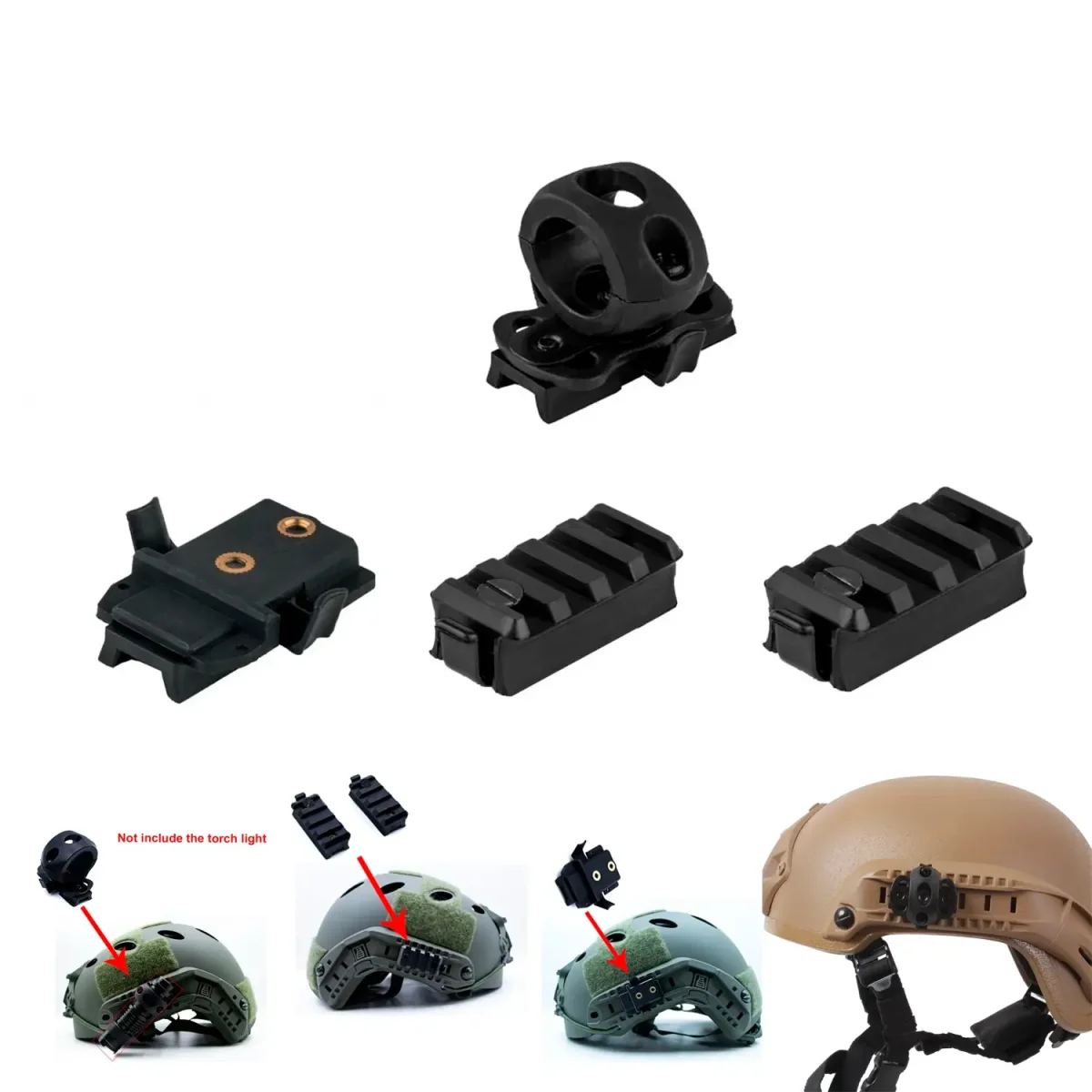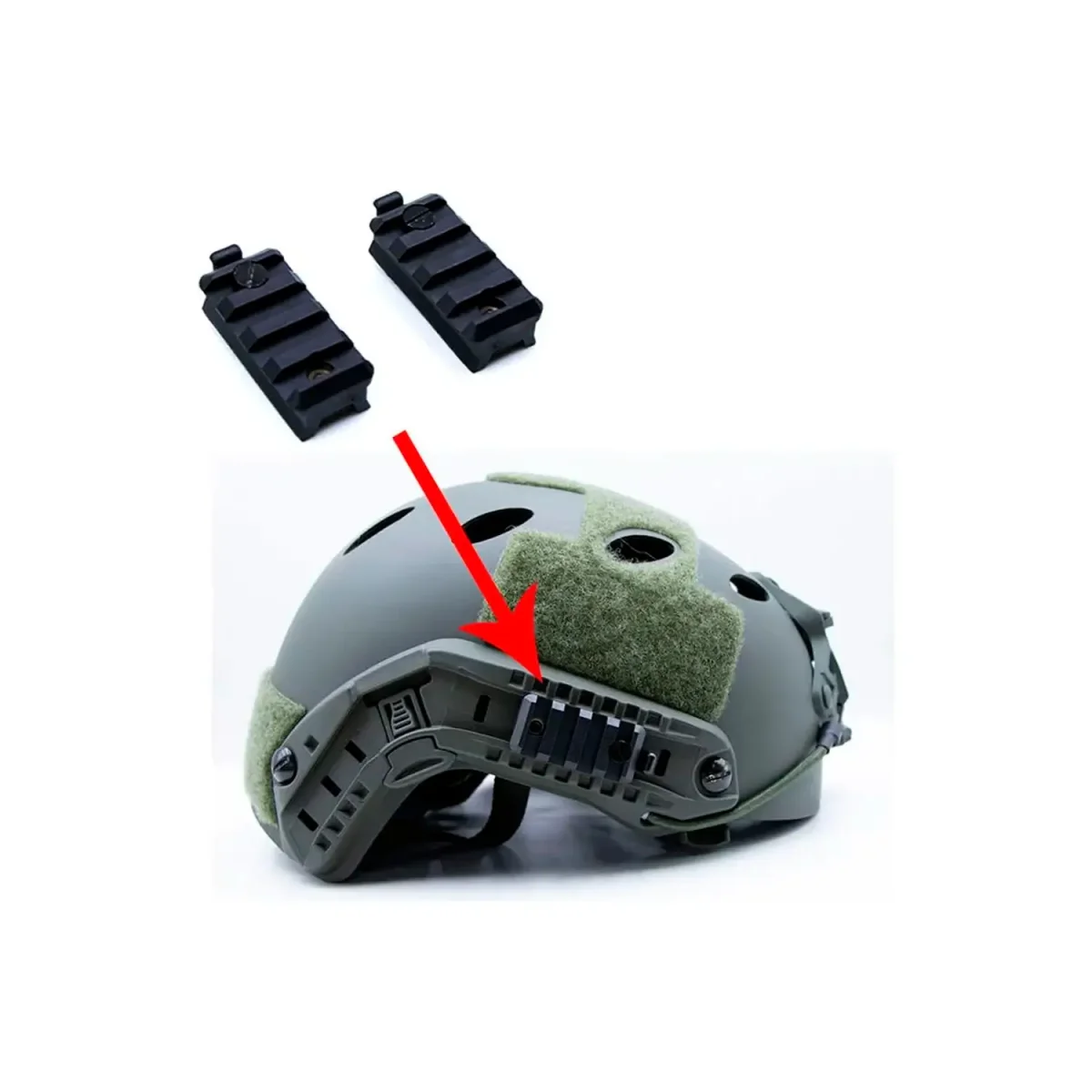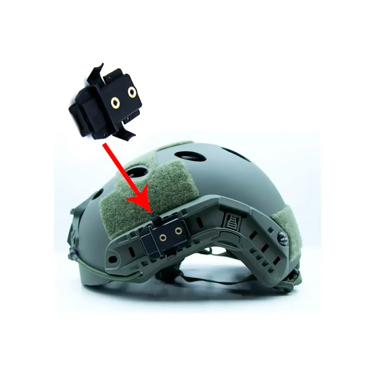 Permite montar linternas, láseres, cámaras y otros accesorios en cascos tácticos Airsoft o balísticos equipados con rieles.