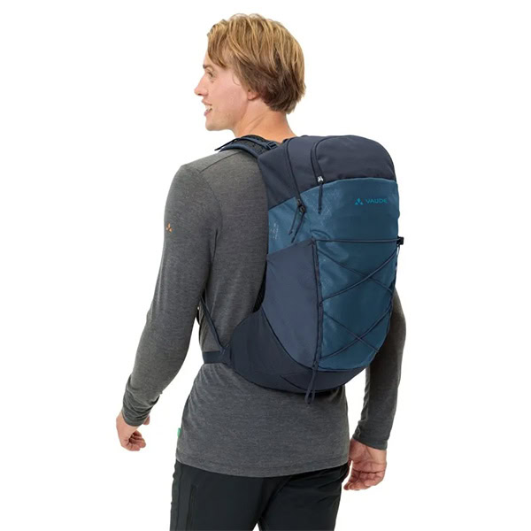También cuenta con soporte para bastones, y un cordón elástico que permite fijar rápidamente un casco o una chaqueta. La mochila Agile Air 20 L lleva el distintivo VAUDE Green Shape, que asegura que el producto es funcional, respetuoso con el medio ambiente y fabricado con materiales sostenibles certificados por bluesign®.