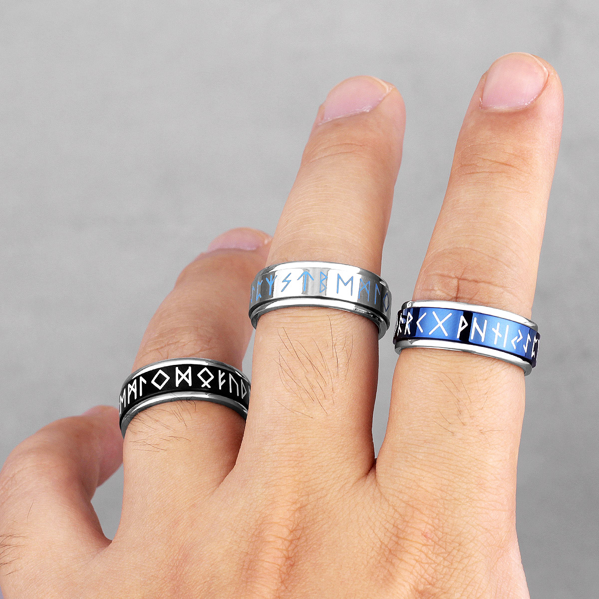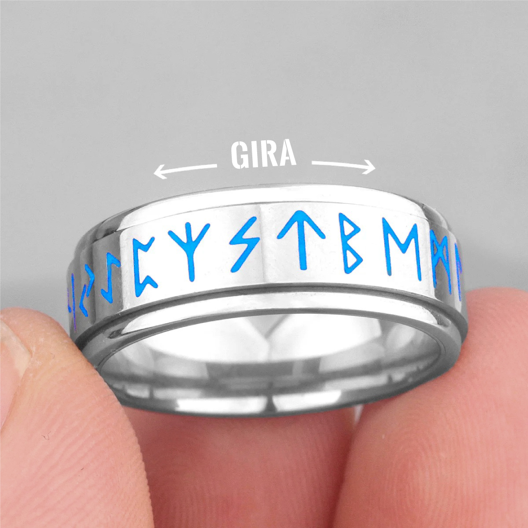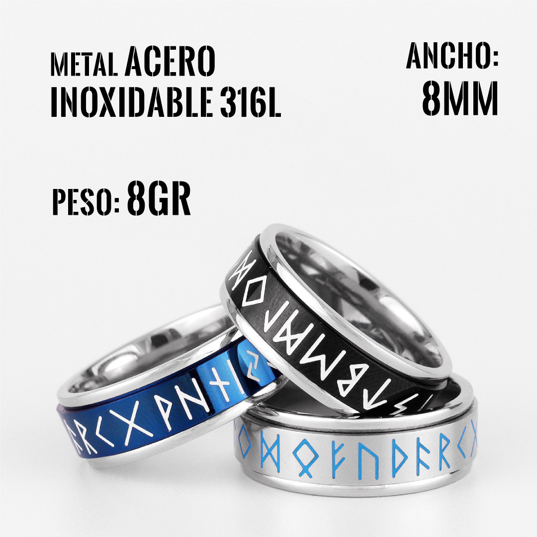 Anillo Giratorio Runas Vikingas Silver Vintage Premium 316L