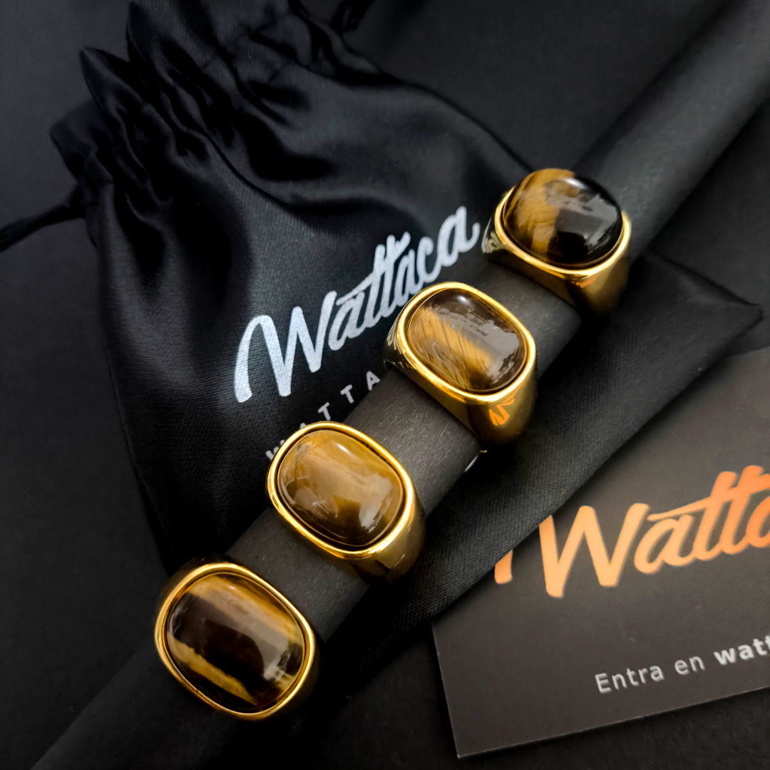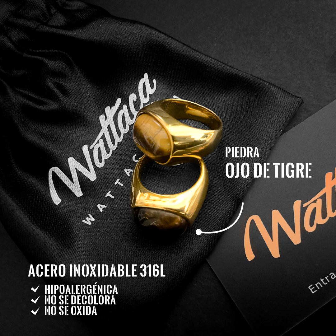 Este anillo combina la elegancia del acero inoxidable 316L con el poder natural del ojo de tigre, una piedra conocida por atraer confianza, equilibrio y protección espiritual. Cada pieza es única gracias a las tonalidades naturales de la piedra, que varían entre marrón, dorado, amarillo y negro.