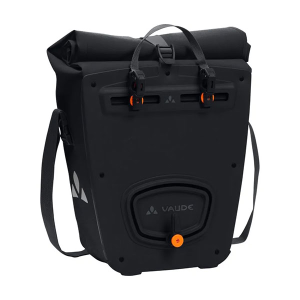¿Qué prefieres: descubrir el mundo o explorar la jungla urbana? Nuestros clásicos para viajes con bicicleta también están disponibles en una variante de material más textil que se puede integrar perfectamente en el día a día urbano. La alforja trasera impermeable con diseño moderno se fabrica sin generar emisiones de carbono en un robusto material de lona sin PVC en la sede alemana de VAUDE, cerca del lago de Constanza. Gracias al cierre enrollable se puede ajustar el tamaño deseado y cerrar herméticamente. Un sencillo bolsillo interior se encarga de que todo esté ordenado. La alforja se fija a la derecha o izquierda del portaequipajes trasero con el sistema QMR 2.0 y una robusta placa trasera, se ajusta mediante ruedecillas de fácil manejo y se puede desmontar fácil y rápidamente. Con un candado de bicicleta se puede candar directamente al gancho QMR. Elementos reflectantes. Puede completarse mediante estas prácticas bolsas de accesorios: Sortyour Business, Sortyour Back, Addita Bag. Contenido: 1 bolsa que puede fijarse a la izquierda o la derecha en el portaequipajes.