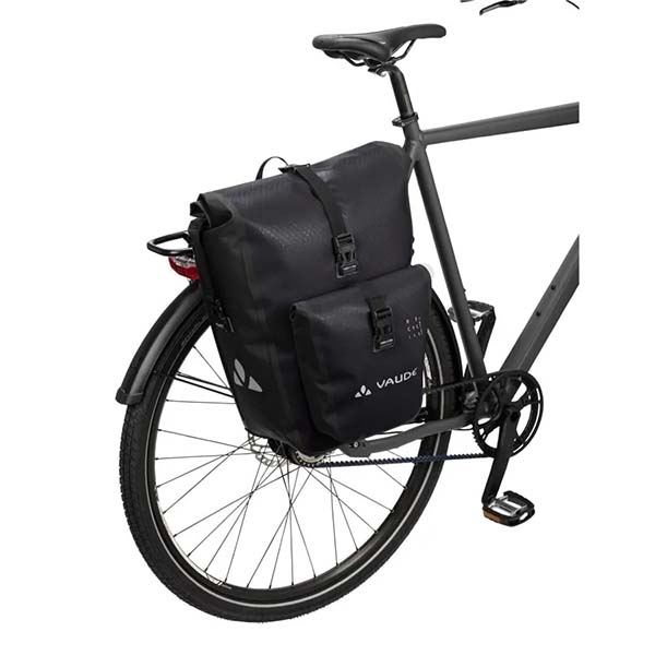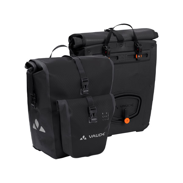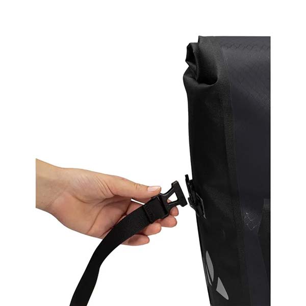 El paquete incluye 2 alforjas para rueda trasera (1 par) con un volumen de 25,5 litros cada una, que se pueden fijar a cualquier portaequipajes con tubos redondos (hasta 16 mm de diámetro). Las alforjas Aqua Back Plus tienen una ventaja adicional: un bolsillo frontal sellado de manera fija y también impermeable, que ofrece espacio para llaves o billetera y permite un acceso rápido.