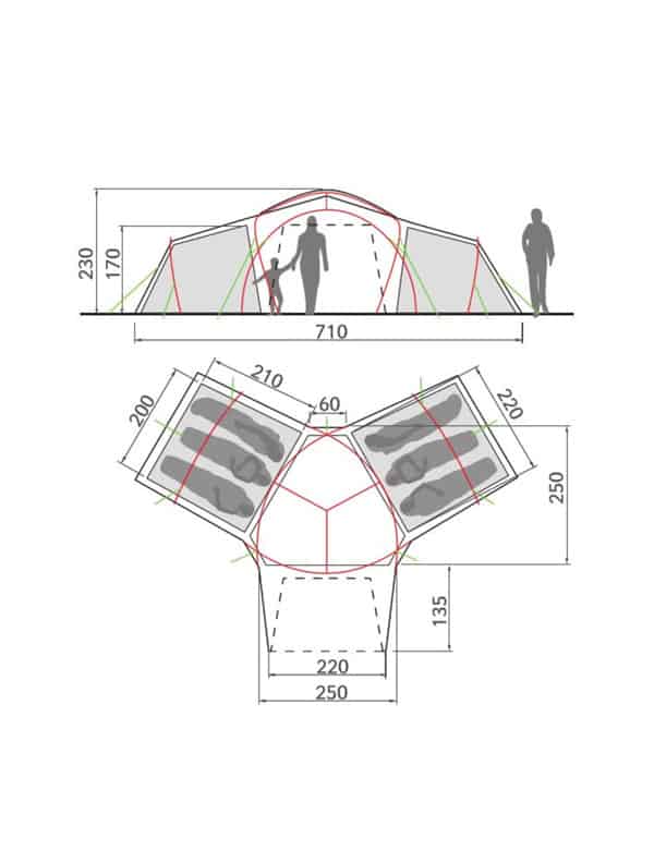 Tienda familiar muy grande para camping # muy espaciosa # 2 habitaciones # muy buena ventilación.