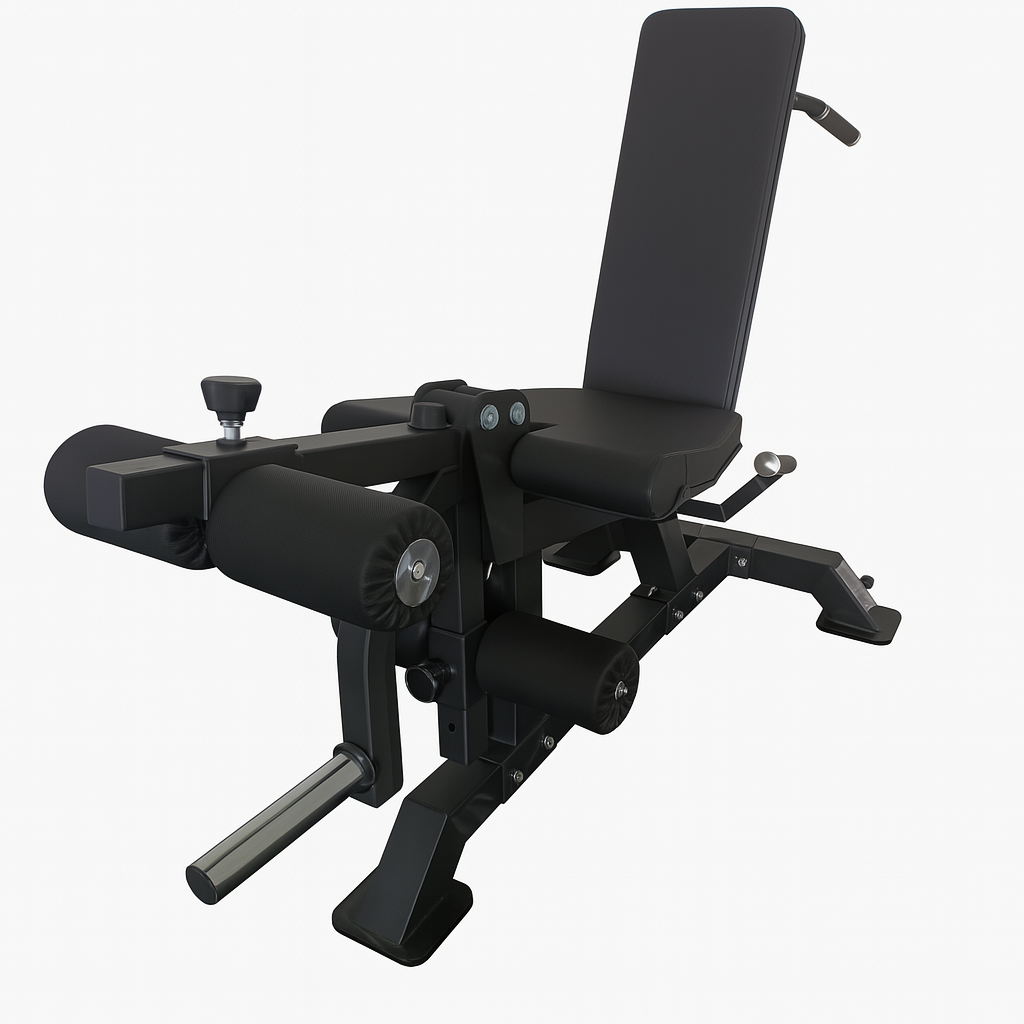 Tipo de máquina: Banco 2 en 1 – permite trabajar tanto la extensión de cuádriceps como el curl femoral tumbado o sentado.