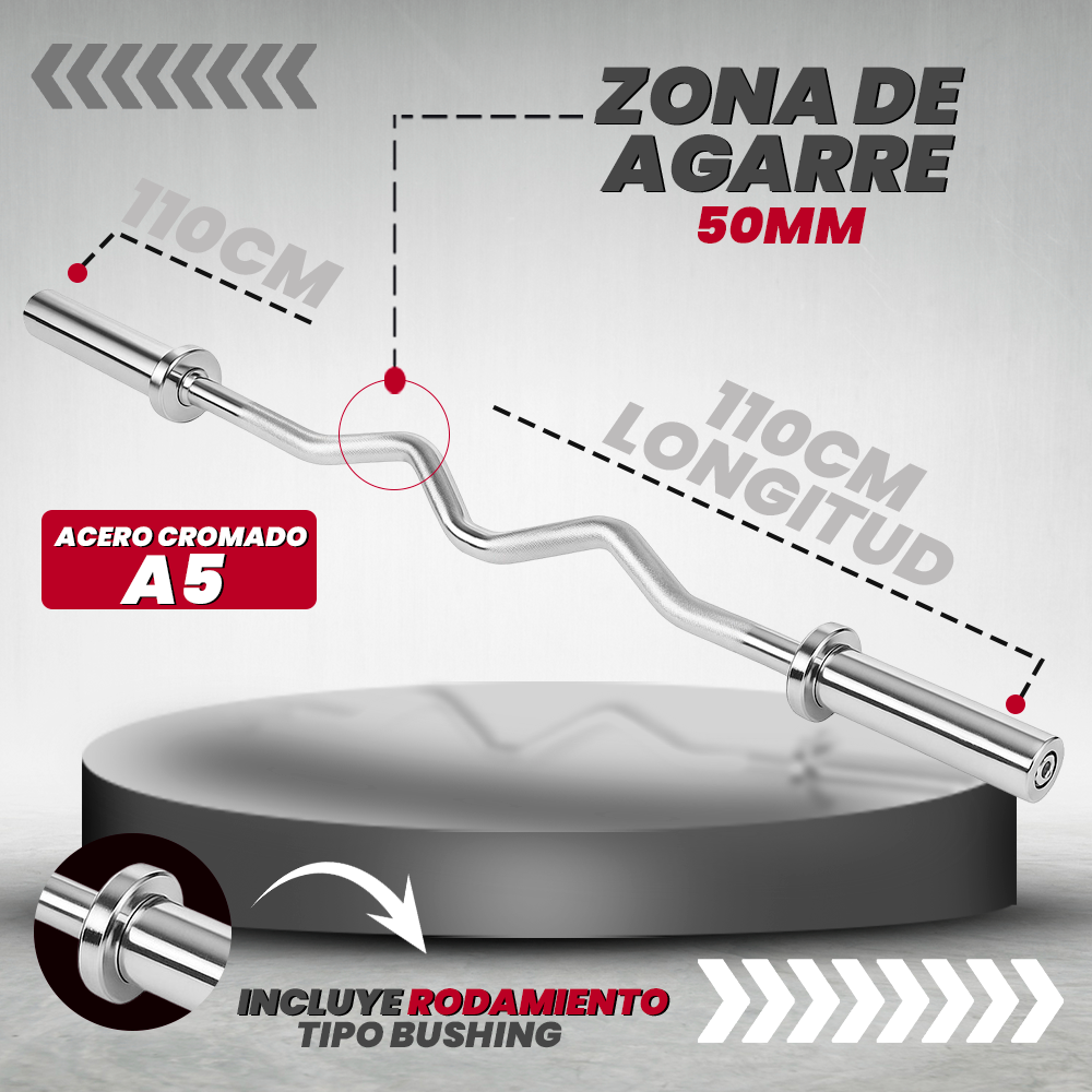 - Diámetro de casquillo de discos: 50mm (para disco olímpico)