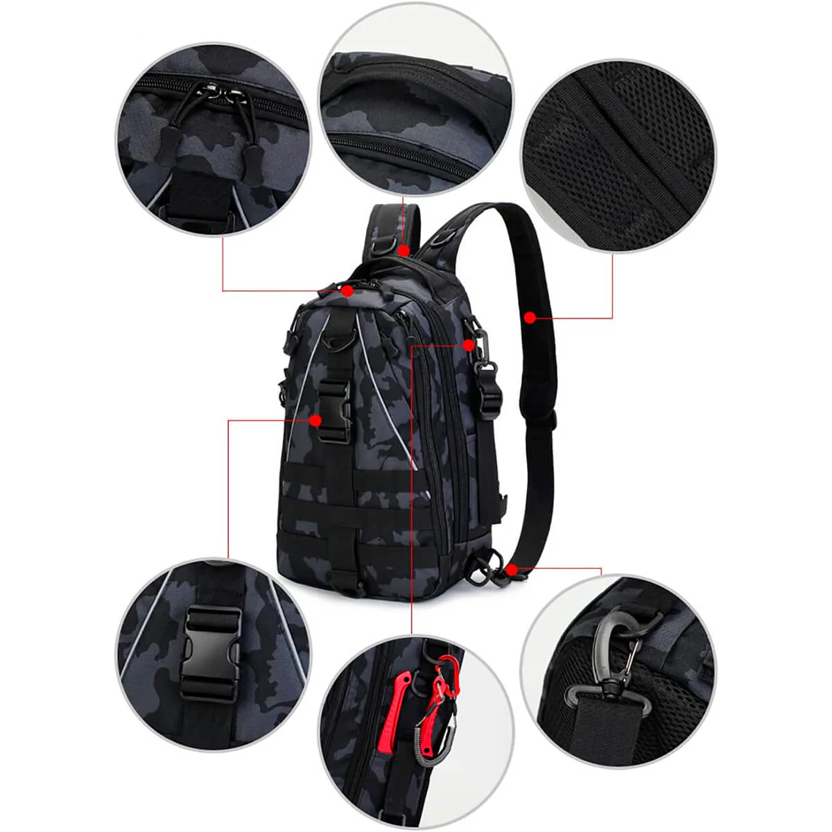 Nuestra bolsa cruzada táctica de alta calidad está diseñada y adecuada para muchas actividades al aire última intervensión. Esta mochila de hombro tiene un bolsillo para botella de agua, una parte trasera de malla suave y transpirable y una correa para un transporte cómodo. Mochila multiusos con cierre en el diseño de la correa, puedes llevarla como mochila o bolsa para tu ocio diario, casual, para colgar, ciclismo, senderismo, viajes, etc.