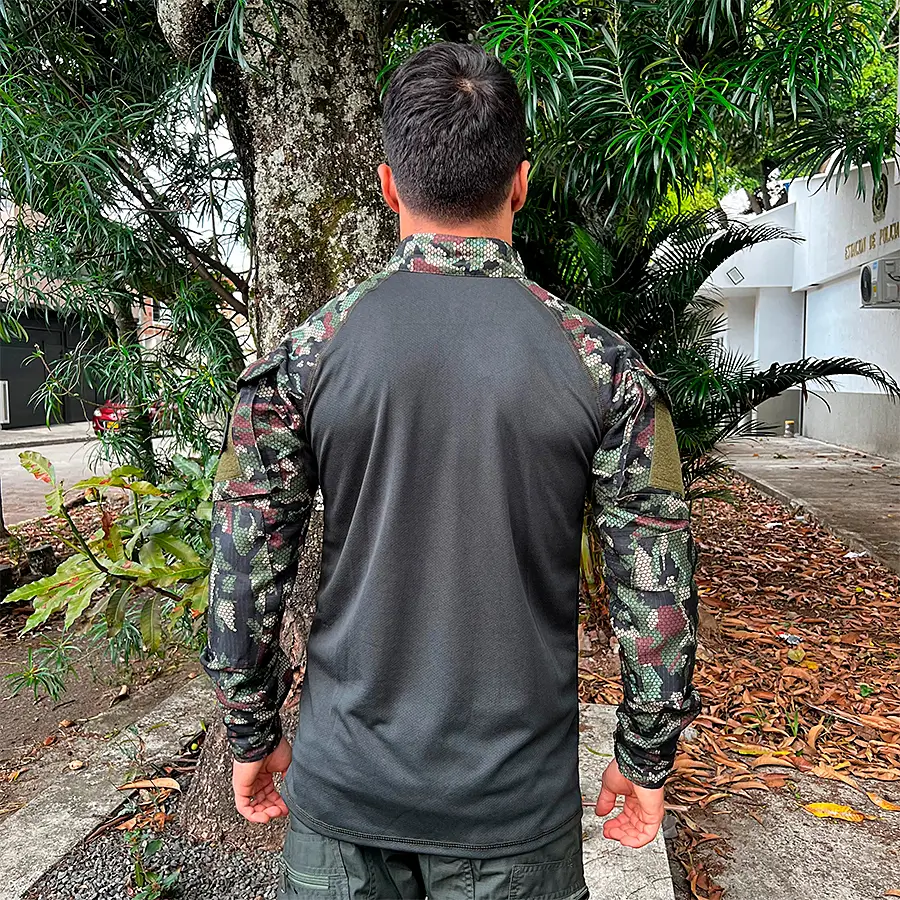 - Elaborado en tela colmena en pecho y espalda, mangas y cuellos tela galleta (Army ristop).