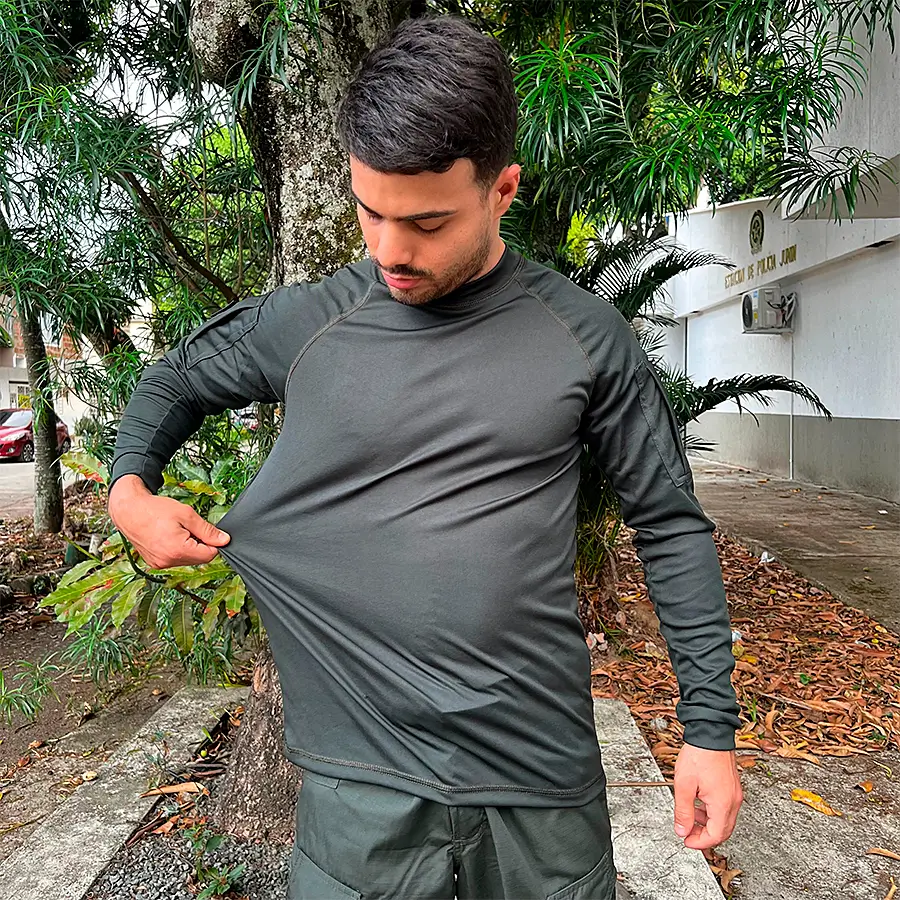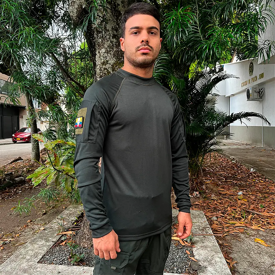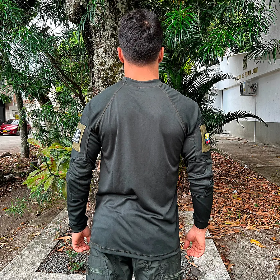 Buso / Buzo diseñado para usar debajo de los chalecos tácticos, la flexibilidad del tejido permite un diseño más delgado con la máxima movilidad.