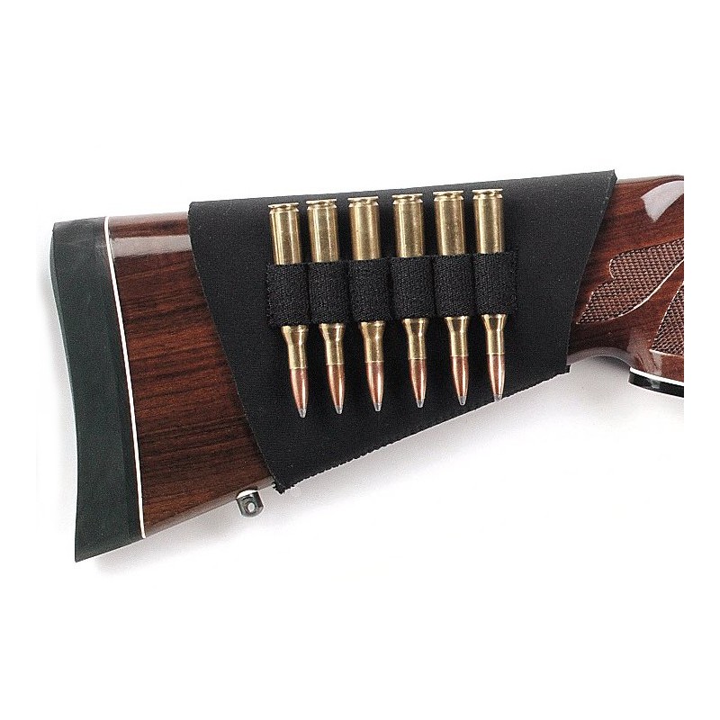 – Tejido elástico que se ajusta rápidamente a la culta del rifle.
