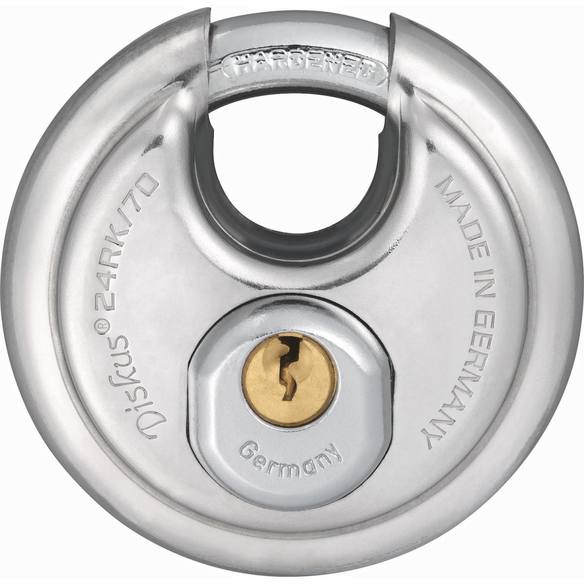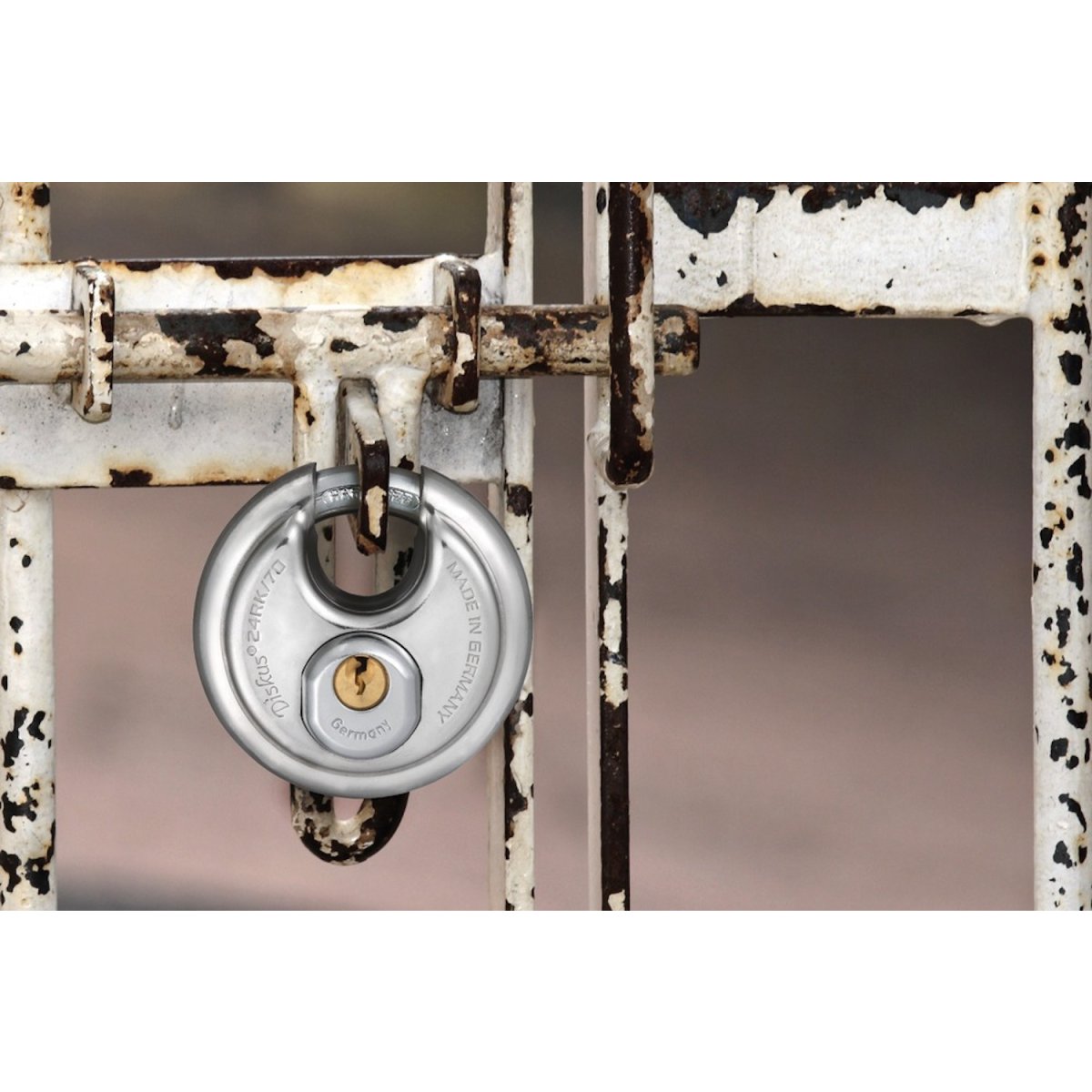 El ABUS Diskusschloss es una forma especial de candado con ventajas especiales. La forma del Diskusschlösser los métodos de superación más comunes se evitan efectivamente. Por lo tanto, la apertura del soporte pequeño de diseño específico apenas tiene espacio para ataques en el soporte. Debido al uso predominante del acero inoxidable, el bloqueo de disco encuentra su aplicación especialmente cuando se requiere seguridad y protección contra la corrosión. Con el ABUS Diskus 24 se pueden cerrar puertas, portones, armarios, bodegas, cobertizos, etc. Idealmente, se debe usar una trampa ABUS Diskus, para que el arco de la cerradura no pueda ser atacado con herramientas de demolición. El ABUS Discus 24RK es un bloqueo de servicio. El cilindro de la cerradura es intercambiable y adaptable a las cerraduras existentes.