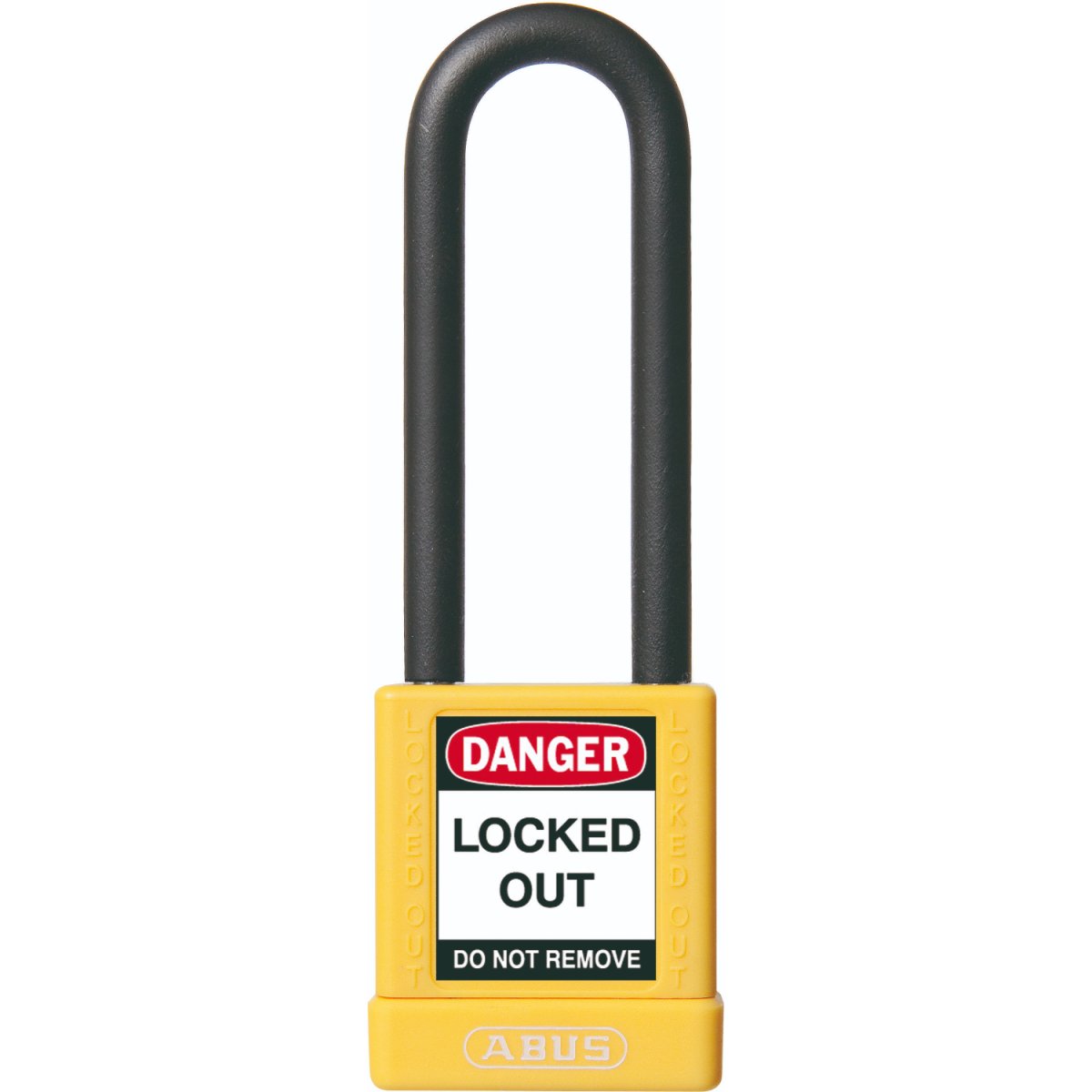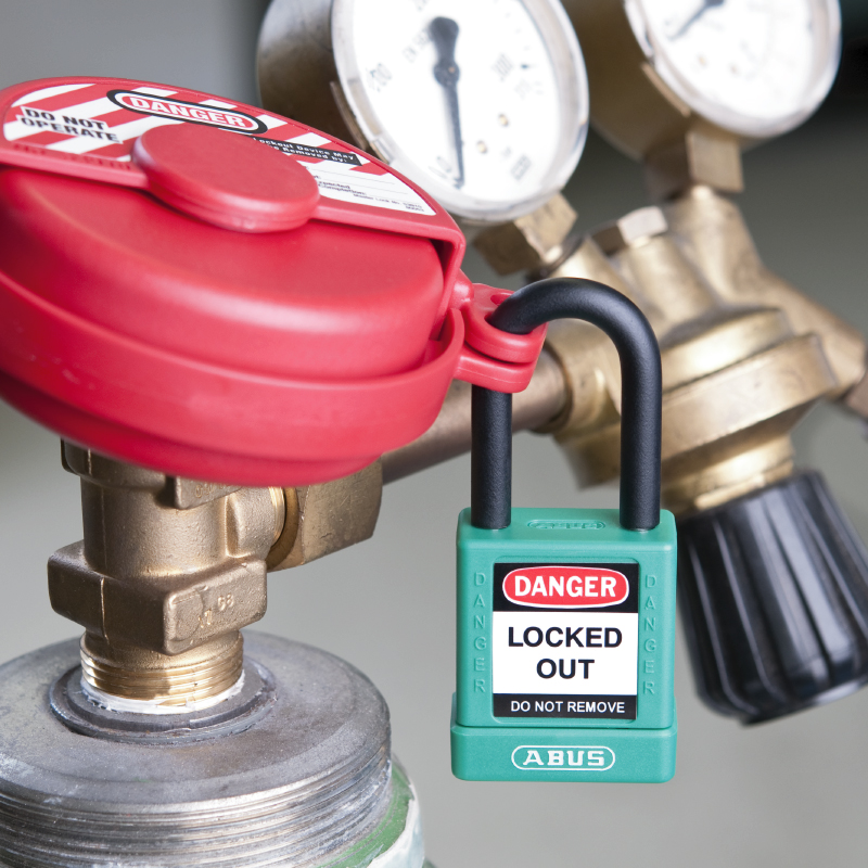 - ¡Las etiquetas de advertencia advierten contra riesgos y peligros! Para los candados de la serie 74, ABUS le ofrece calcomanías de bloqueo a juego en diferentes idiomas. Especialmente en el campo de la seguridad laboral, las pegatinas son útiles. Por lo tanto, es inmediatamente reconocible por ellos que una máquina se encuentra bloqueada deliberadamente para realizar mantenimiento.
