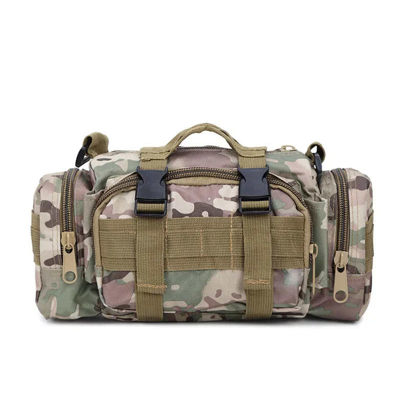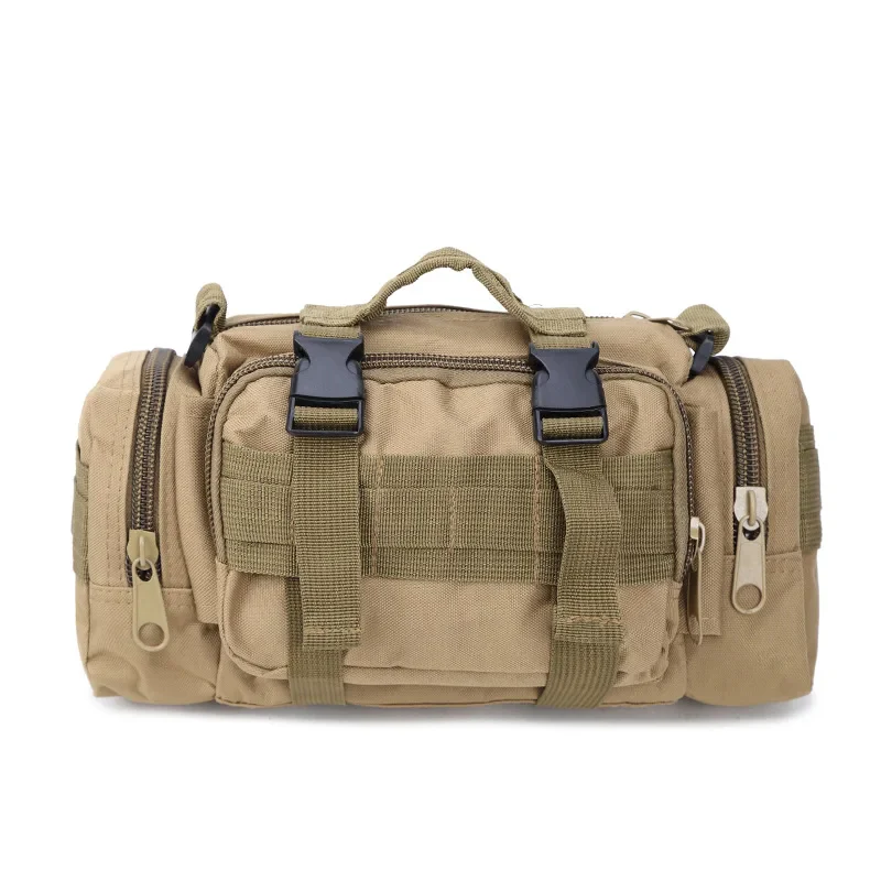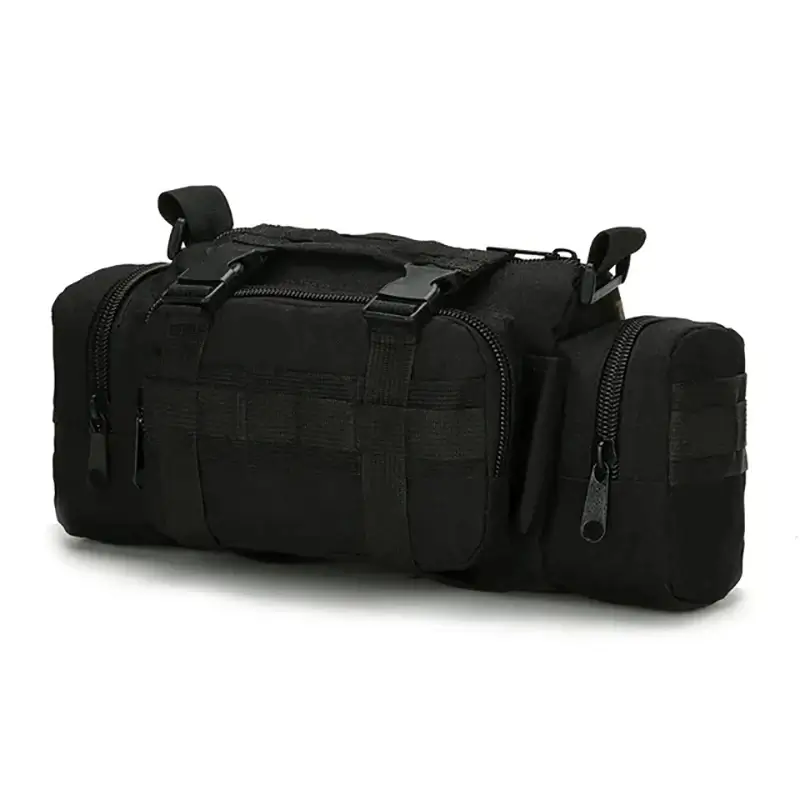 Bolsillo grande con cremallera en el medio, Partición de malla, 1 bolsillo frontal con cremallera, 2 posiciones de inserción de bolígrafos, 1 bolsillo con cremallera en ambos lados, 1 capa intermedia de bolsillo trasero para la cintura, varias posiciones de montaje MOLLE, 1 cinturón de hombro en total, longitud desmontable y ajustable.