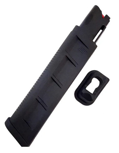 Cargador metálico con capacidad para 20 cartuchos.