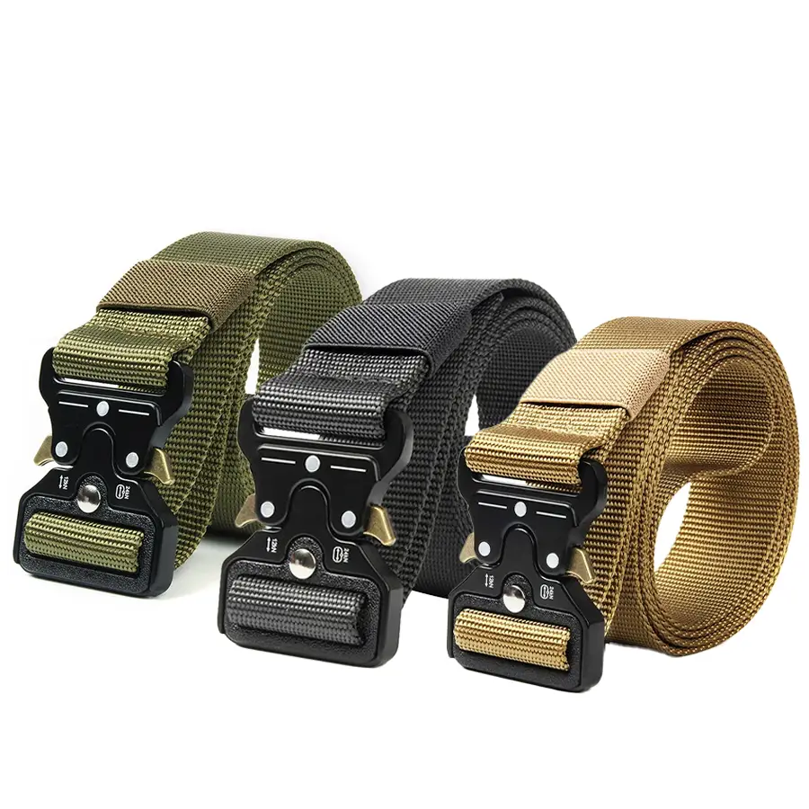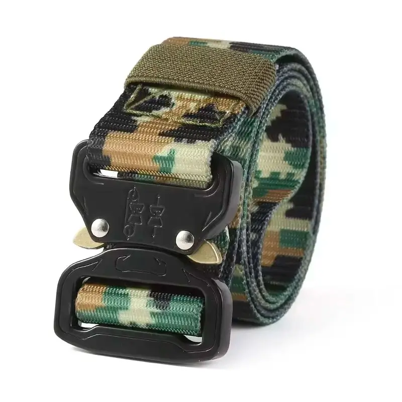 Correa, cinturón táctico para hombre-mujer, estilo camuflaje militar, cinturón de nailon con hebilla de liberación rápida resistente.