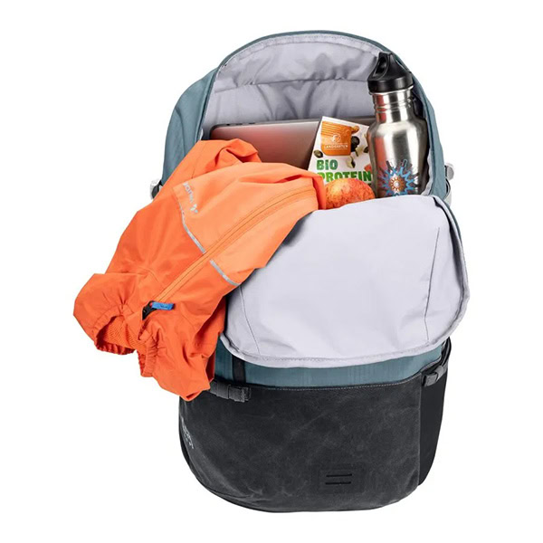 El CityGo 30 II es una mochila urbana que lo lleva todo: combina influencias de los deportes de montaña y bicicleta, así como de la vida urbana cotidiana, en un paquete armonioso. Es increíblemente versátil y cuenta con muchas características útiles: un compartimento exterior acolchado con cremallera proporciona acceso rápido a laptops de hasta 15.6″ y otro compartimento exterior más pequeño almacena una batería portátil o tu teléfono. El gran compartimento principal se puede abrir ampliamente con su cremallera envolvente o acceder cómodamente a través de la cremallera frontal. Esta mochila urbana también destaca por su sofisticada organización interior para utensilios de escritura, llaves y todo lo que necesita ser encontrado rápida y fácilmente. Un casco o un candado en U se pueden sujetar rápidamente a las correas de compresión laterales y un bolsillo lateral de malla ofrece espacio para una termo, botella de agua o un snack para tu descanso. El respaldo de contacto Vent-Comfort, junto con las correas ergonómicas para los hombros y el cinturón de cadera, aseguran una excelente comodidad de uso, incluso con una carga pesada. También puedes pedir un carril de luz Light-Me-Up opcional: conéctalo a la mochila, engancha tu batería portátil y tendrás capacidades de brillo en la oscuridad. En resumen, es una mochila sofisticada para el uso diario en la jungla urbana. La etiqueta VAUDE Green Shape garantiza productos ecológicos y funcionales hechos de materiales sostenibles y certificados por bluesign®.