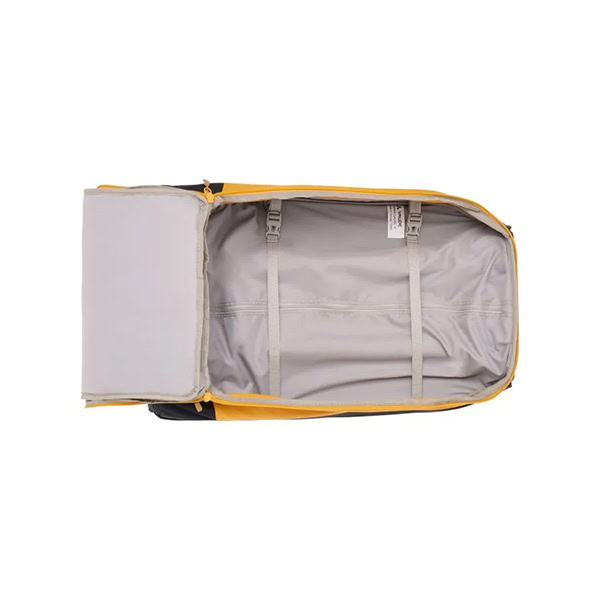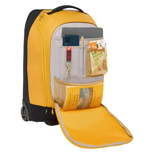 El interior del City Travel Carry-On está dividido de forma sensata en dos compartimentos: el gran compartimento principal para ropa y el compartimento frontal con un compartimento separado para el portátil (hasta 13,3″) y un organizador para organizar claramente los dispositivos electrónicos y los elementos esenciales de viaje.