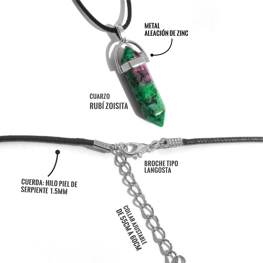 - Péndulo: cuarzo Rubí Zoisita.