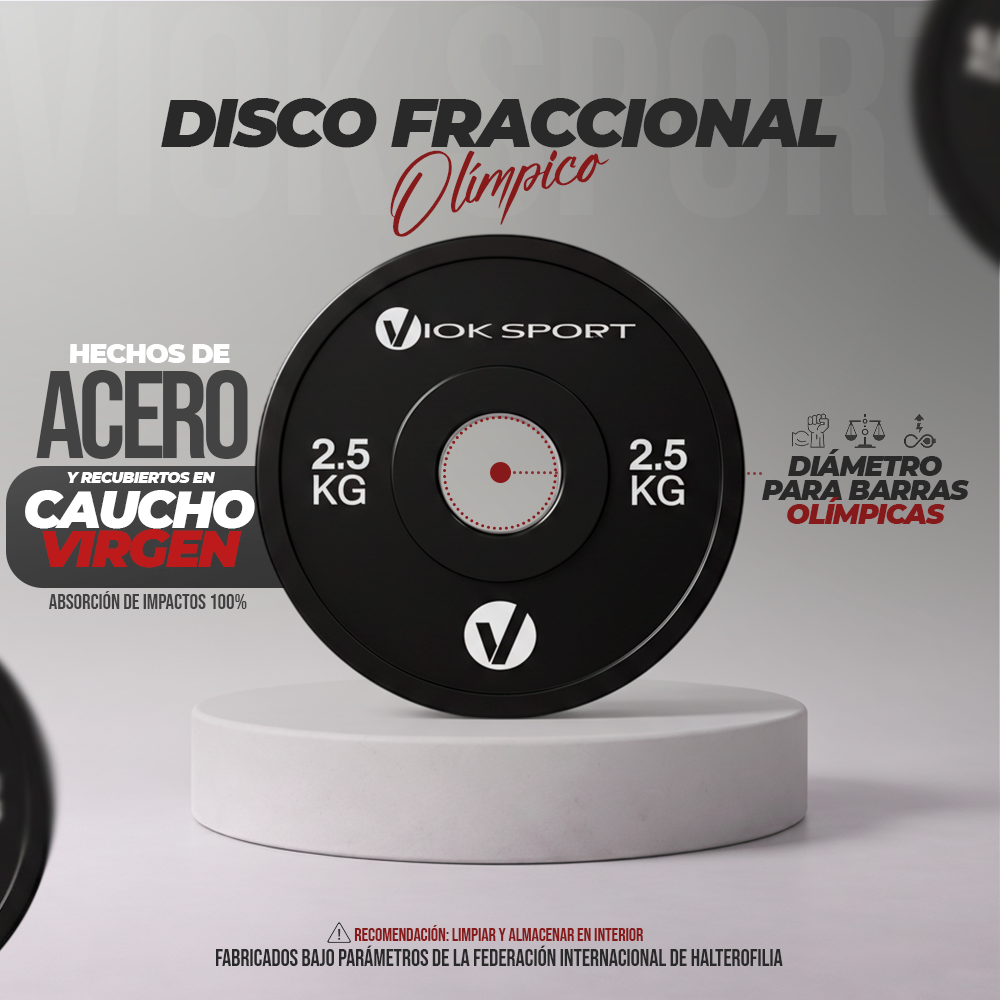 [/vc_column_text][vc_column_text css=””]Los discos fraccionales olímpicos facilitan un progreso gradual en el aprendizaje técnico de los movimientos de halterofilia. Son ideales para entrenar levantamientos con precisión, tal como lo requiere el nivel competitivo.[/vc_column_text][vc_row_inner][vc_column_inner width=”1/4″][vc_empty_space height=”15px”][vc_single_image image=”7129″ img_size=”full” alignment=”center”][vc_column_text]