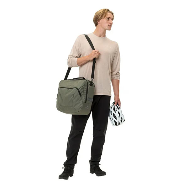 Para quienes buscan desplazarse con estilo a la universidad o la oficina, ya sea en bicicleta eléctrica o convencional, VAUDE presenta la bolsa messenger eMessenger L. Esta bolsa cuenta con un compartimento acolchado para laptops de hasta 15,6″, un amplio compartimento principal para ropa o documentos, y un bolsillo frontal con múltiples secciones para organizar objetos pequeños.