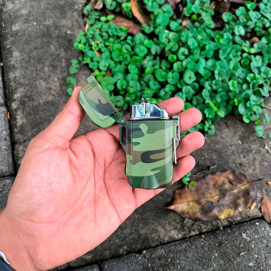 Lleva el poder del fuego moderno en tus manos con el Encendedor Eléctrico Camo EG0014, diseñado para los amantes de la aventura y la supervivencia. Su diseño impermeable y camuflado lo convierte en un accesorio esencial para camping, senderismo o cualquier actividad al aire libre.