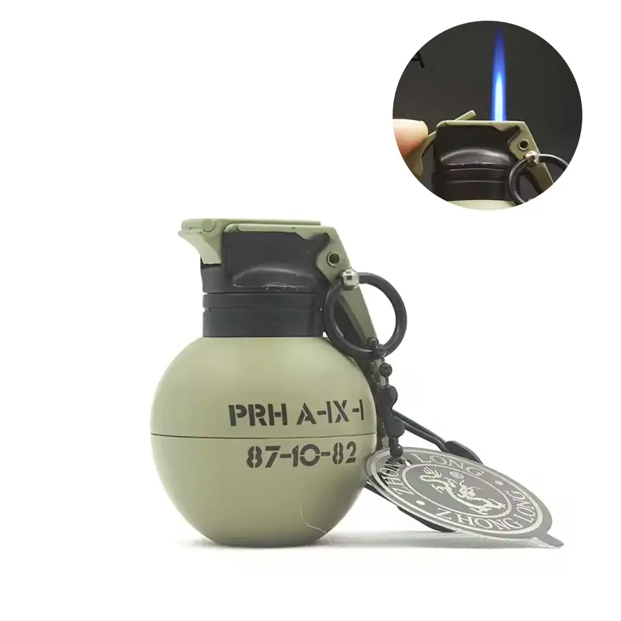 Llavero de Granada pequeña, mechero recto a prueba de viento, molde militar, colgante de regalo pequeño.