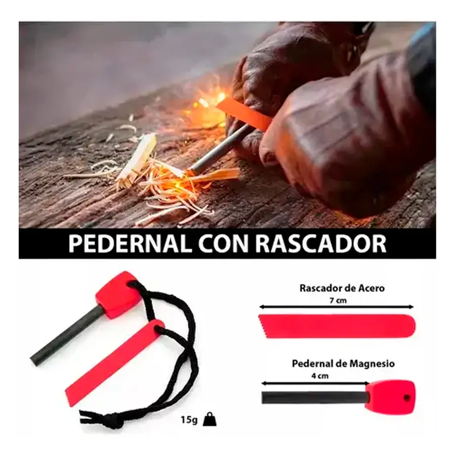 Pedernal de Magnesio: Iniciador de fuego de alta temperatura.
