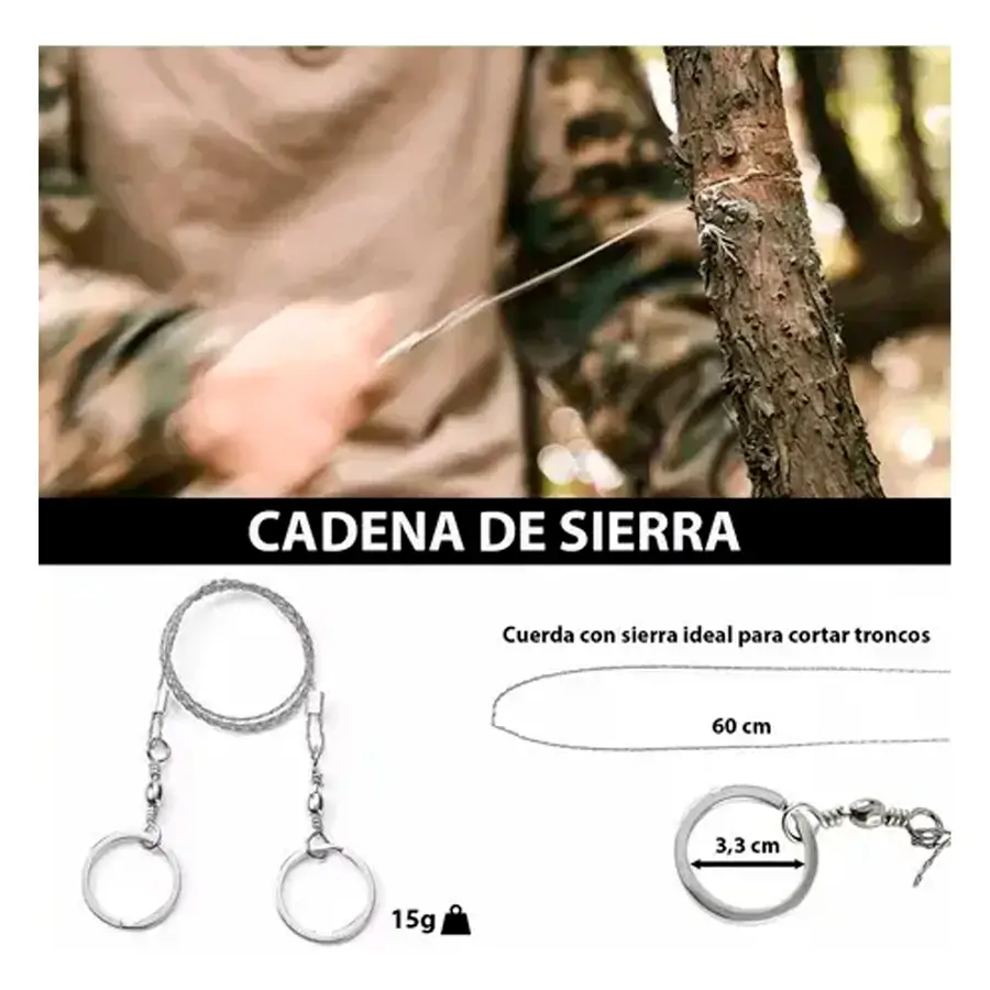 Sierra de Alambre: Flexible, triple filamento con aros giratorios de 360°.