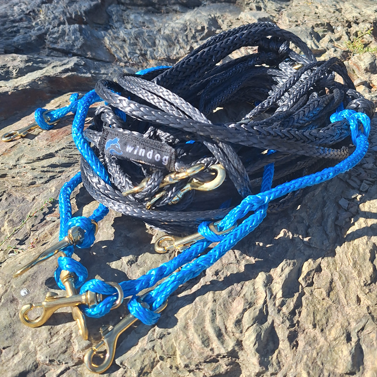 Las lineas llevan mosquetones de Bronce en las Tuglines y en las Necklines.