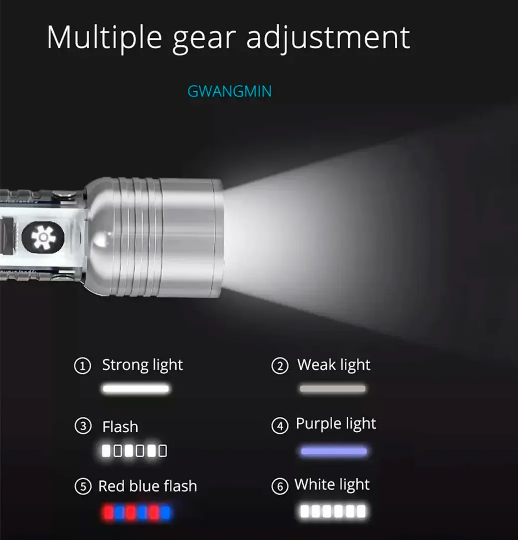 Mini Linterna Baliza Iman Tactica Led Recargable Usb Zoom.