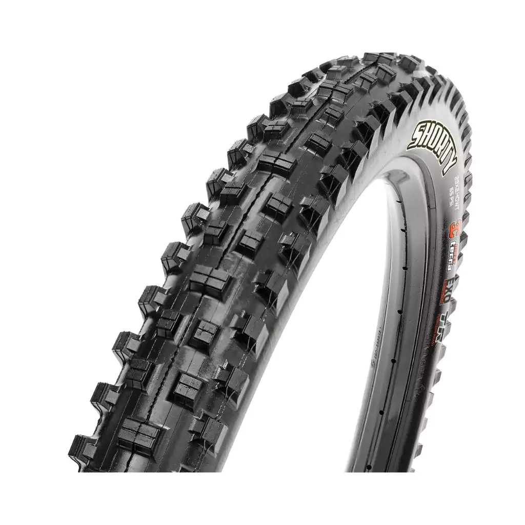 La llanta Maxxis 29 MTB SHORTY Foldable 3CT-EXO-TR etá diseñada para mejorar la tracción en terreno húmedo, el rendimiento en las curvas y la eliminación de barro. Además, su carcasa de 2,40» reduce el peso y despeja el espacio entre cuadro y horquilla.