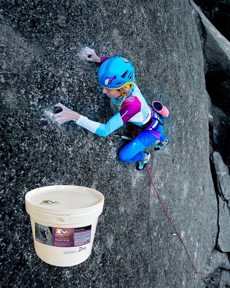 Antes de comenzar la escalada y durante la misma, coger una pequeña cantidad de magnesio, frotar bien entre los dedos y palma de las manos. Elimina el magnesio sobrante de la piel, soplando o sacudiendo la mano contra el pantalón.