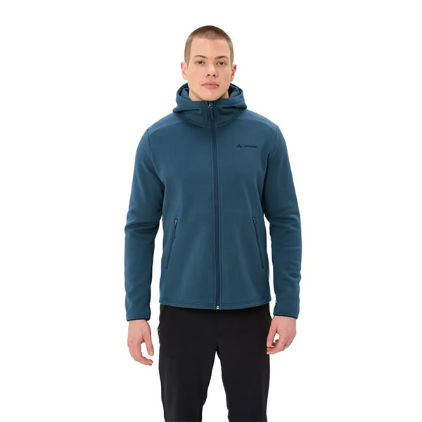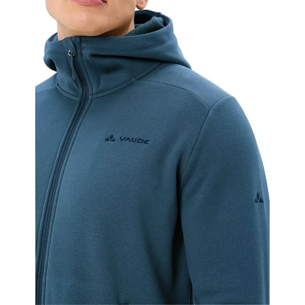 La sudadera de felpa con capucha Idris para hombre es la navaja suiza de las chaquetas de felpa: incluye capucha, un material de grosor medio y se puede llevar sola o como capa cálida bajo una chaqueta. Además, su clean look se adapta a la ciudad y al campo. Las ventajas de la felpa: es robusta, de fácil cuidado, transpirable y de secado rápido. En la sudadera con capucha de felpa Idris para hombre se han reforzado las propiedades de regulación del clima mediante la textura cardada en el interior. Cuando sopla el viento, la capucha y el cuello elevado protegen la cabeza y el cuello de manera fiable. Otro detalle inteligente: los hombros no tienen costuras, por lo que no hay molestos puntos de presión en las salidas con mochila. Quienes prefieren salir sin mochila, pueden guardar sus objetos en los dos bolsillos laterales con cremalleras. En invierno, la sudadera de felpa con capucha Idris para hombre es una magnífica capa media aislante y no demasiado calurosa. Combina a la perfección con la parka Idris 3 en 1 para hombre, con la que se conecta mediante cremalleras compatibles y lazadas de unión. Como miembro de alto rango en la organización independiente Fair Wear, VAUDE está comprometida con unas condiciones laborales y unos salarios justos. El distintivo VAUDE Green Shape indica que el producto es funcional, respetuoso con el medioambiente y que está fabricado con materiales sostenibles.