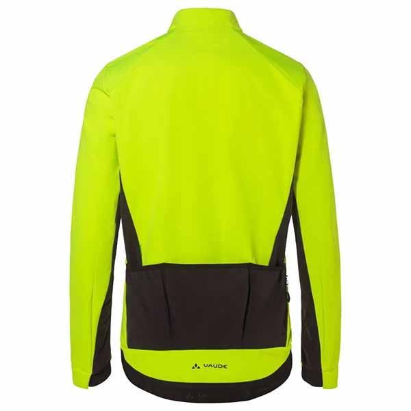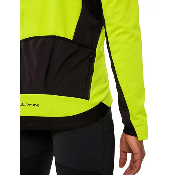 Con un corte trasero más largo, una cinturilla elástica VAUDE y inserciones de silicona en la parte trasera, la chaqueta ciclista se ajusta perfectamente, incluso en movimiento. También ofrece mucho espacio de almacenamiento gracias a sus tres bolsillos traseros abiertos, un pequeño bolsillo con cremallera y un bolsillo en el pecho con cremallera.