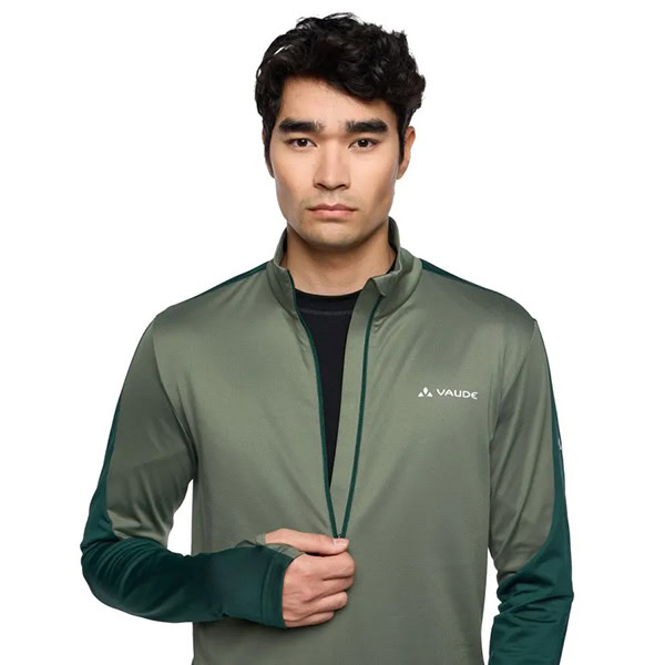 La Men’s Livigno Halfzip II es la perfecta capa intermedia ligera para semiconvertible. Esta fina capa intermedia está fabricada en material de felpa elástico y muy suave, lo que permite proporcionar una óptima regulación de la temperatura y, al mismo tiempo, una elevada comodidad de uso. Su larga cremallera brinda, en caso necesario, una buena ventilación y el corte atlético, en combinación con el material elástico, garantiza la óptima libertad de movimientos. No importa si lo llevas para la salida de montaña o como acompañante transalpino en la bicicleta: esta capa intermedia destaca por su uso polivalente. El distintivo VAUDE Green Shape indica que nuestros productos son funcionales y respetuosos con el medio ambiente, y que están fabricados con materiales sostenibles.
