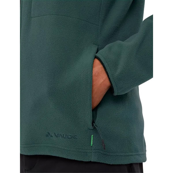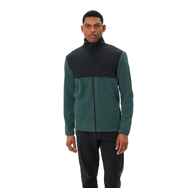Una chaqueta de felpa para hombre, para llevar por debajo y por encima: esta ligera prenda cálida y ecológica de material de secado rápido mantiene el cuerpo cómodo y caliente en los días de frío. La chaqueta de felpa para hombre se puede llevar bajo un chubasquero o sola como chaqueta de entretiempo. El tejido de refuerzo en pecho y espalda no solo da un toque moderno, también protege los hombros, por ejemplo, contra el desgaste de la mochila. El cuello alto protege contra la brisa fresca y el bolsillo con cremallera en el pecho permite guardar el móvil o el monedero. El cordón tensor en el dobladillo se maneja desde los lados y ayuda a mantener el calor corporal. Gracias a su gran proporción de elastano, la chaqueta de felpa Mineo acompaña al hombre en todos sus movimientos. En definitiva, esta chaqueta de felpa para hombre es una compañera sencilla y de fácil cuidado para el día a día en la ciudad. El distintivo VAUDE Green Shape indica que el producto es funcional, respetuoso con el medioambiente y que está fabricado con materiales sostenibles. Como miembro de alto rango en la organización independiente Fair Wear, VAUDE está comprometida con unas condiciones laborales y unos salarios justos.