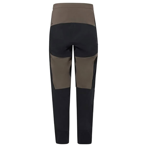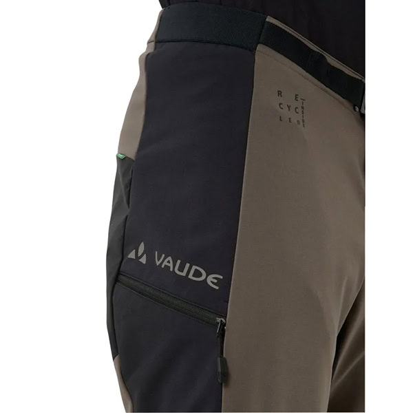 Pantalón de ciclismo híbrido para hombre, de softshell y muy técnico para ciclistas ambiciosos, que recorren circuitos muy exigentes incluso a finales de otoño y en invierno. Este comodísimo pantalón de ciclismo largo de softshell para hombre incluye una innovadora cintura 2 en 1, de fácil ajuste y sin cremalleras, con lo que no hay nada que presione o estrangule. La cintura es más alta por detrás y elástica. El corte progresivo de la rodilla preformada permite circular con protectores; las nalgas están reforzadas con 3 capas de material, para superar incluso los circuitos más exigentes. Zonas transpirables en la parte posterior de la pierna, dos bolsillos delanteros con cremallera y el corte más ajustado en la parte inferior de la pierna, con bajos muy elásticos, completan este paquete técnico. El material, muy resistente, del pantalón de ciclismo de softshell para hombre ofrece una protección fiable contra el enfriamiento y está equipado con Eco Finish, libre de PFC, que repele el agua y la suciedad. El distintivo VAUDE Green Shape indica que el producto es funcional, respetuoso con el medioambiente y que está fabricado con materiales sostenibles.