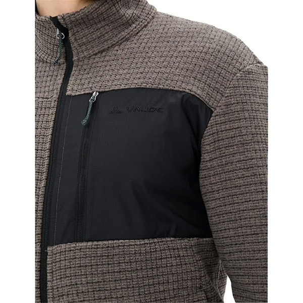 En el exterior, la estructura tipo gofre ligeramente perchada aporta un aspecto moderno, y en el interior ofrece una sensación muy suave y agradable al tacto. El cuello alto, los puños ajustados y el dobladillo regulable contribuyen a un mayor confort y a un ajuste óptimo. Los objetos pequeños más importantes pueden guardarse cómodamente en los dos bolsillos laterales con cremallera y en el bolsillo de pecho en contraste de color.
