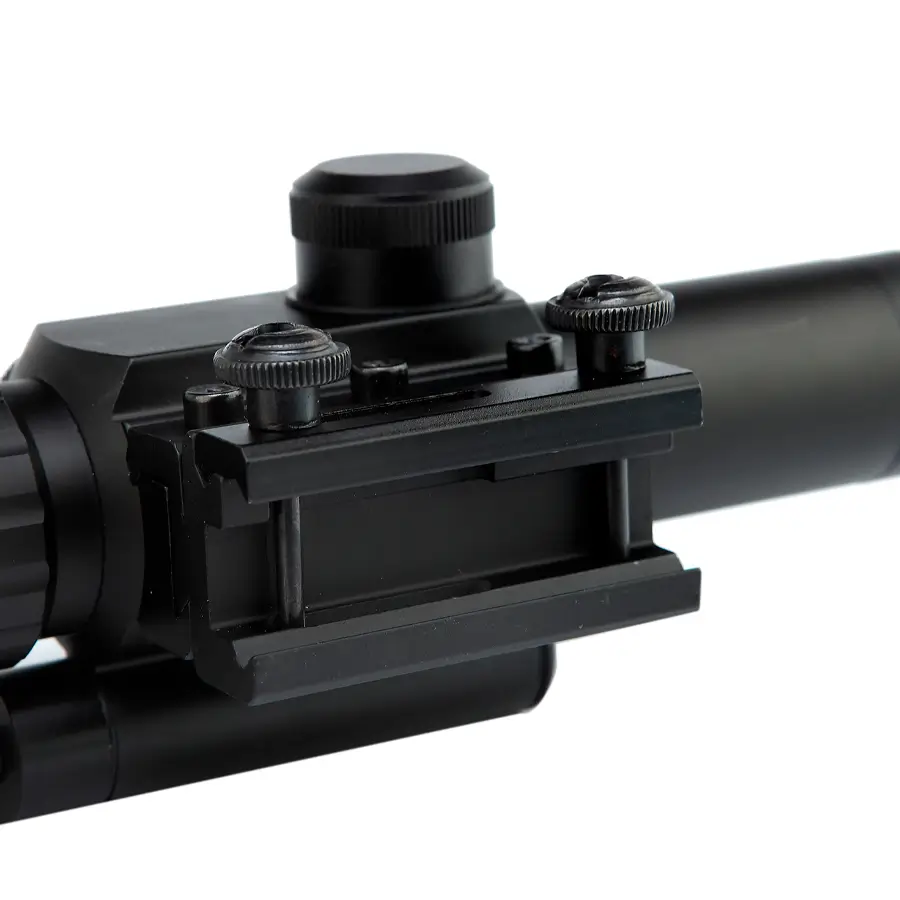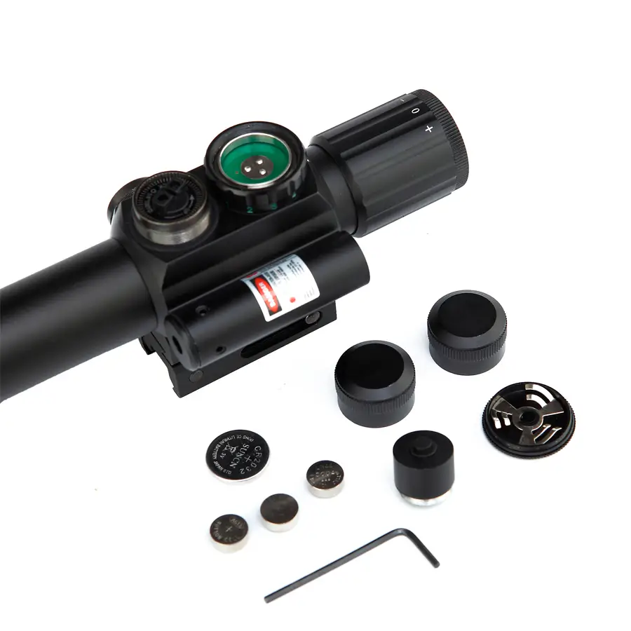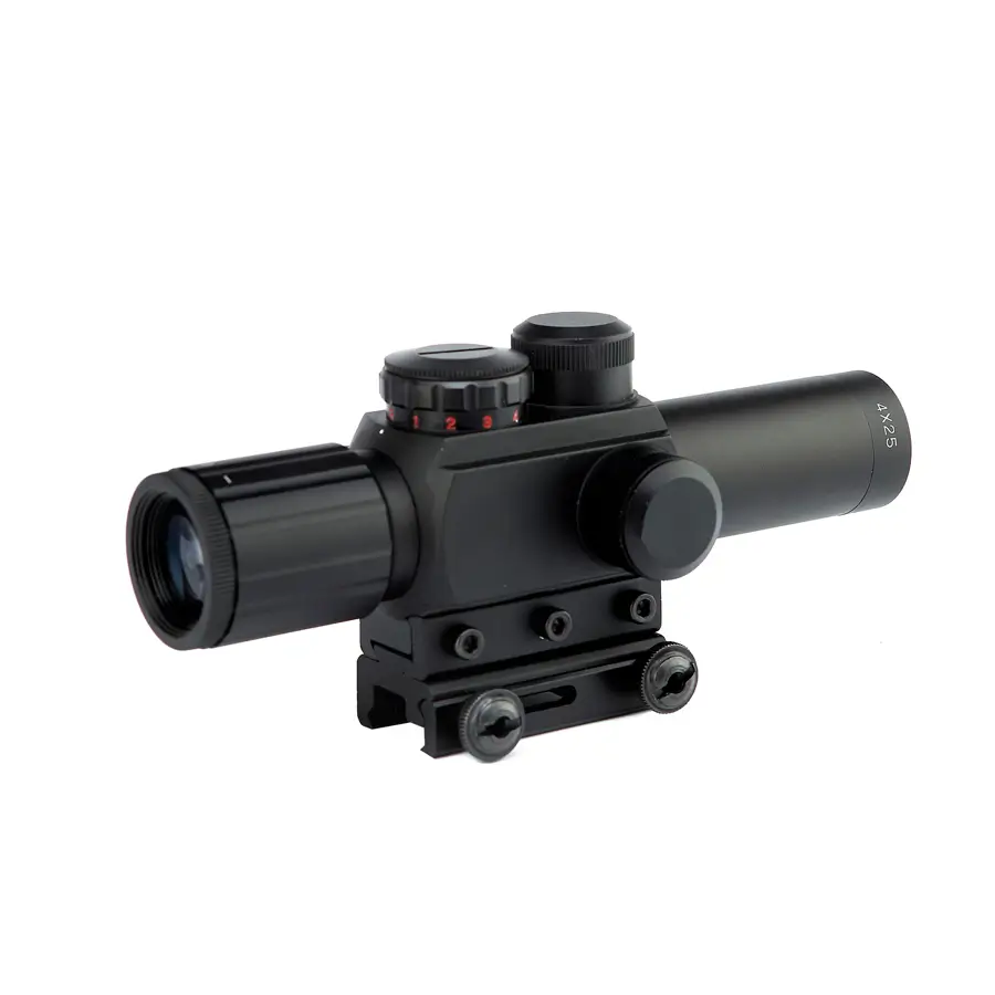 La Mira M6 con láser rojo es el accesorio ideal para mejorar tu precisión y rendimiento en cada disparo. Su diseño compacto y resistente combina una óptica de 4x aumentos con una retícula iluminada en rojo y verde, lo que permite adaptarse fácilmente a diferentes condiciones de luz y escenarios tácticos.