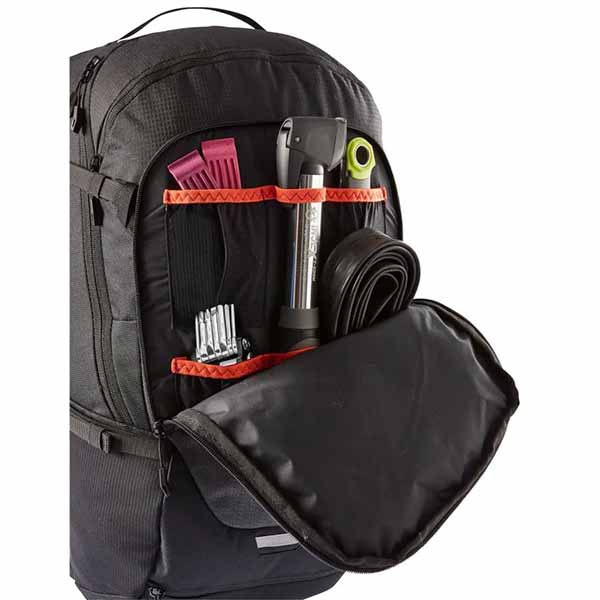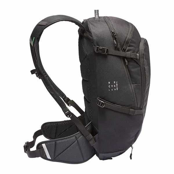 ¡La evolución de nuestro exitoso modelo Bracket garantiza gran comodidad en el ciclismo por senderos! Con la mochila de 20 litros de amplio equipamiento ya no hay más problemas de organización. El sistema optimizado de espalda Ventex Active, muy bien acolchado en la zona lumbar, alivia los puntos de presión y garantiza un ajuste perfecto y una buena ventilación. El cómodo cinturón lumbar atrae el centro de gravedad de la mochila perfectamente hacia la espalda y combinado con los tirantes Ergoshape proporciona un ajuste perfecto con óptima libertad de movimientos en la bicicleta. La mochila se divide en tres compartimentos. Delante del espacioso compartimento principal para la ropa de lluvia y las provisiones hay un compartimento para objetos de valor con bolsillo interior con cremallera. El compartimento para herramientas en la parte delantera de la mochila permite organizar todo lo que tiene que estar a mano en caso de averías. El soporte para casco se puede guardar en la parte delantera inferior. La aleta derecha del cinturón lumbar cuenta con un bolsillo con espacio suficiente para el móvil, la calderilla o una barrita energética. El equipamiento incluye bolsillos laterales elásticos, un compartimento separado para la botella de agua, correas de compresión en la zona lateral, una presilla en el tirante para las gafas de sol, una funda para lluvia en el compartimento inferior separado y elementos reflectantes para mayor seguridad en la oscuridad. Todos los modelos de mochila Moab combinan a la perfección con las estilosas prendas Moab. El material reciclado de la Moab 20 con certificado bluesign® está fabricado con material impermeabilizado con el acabado ecológico Eco Finish sin fluorocarburos (PFC).