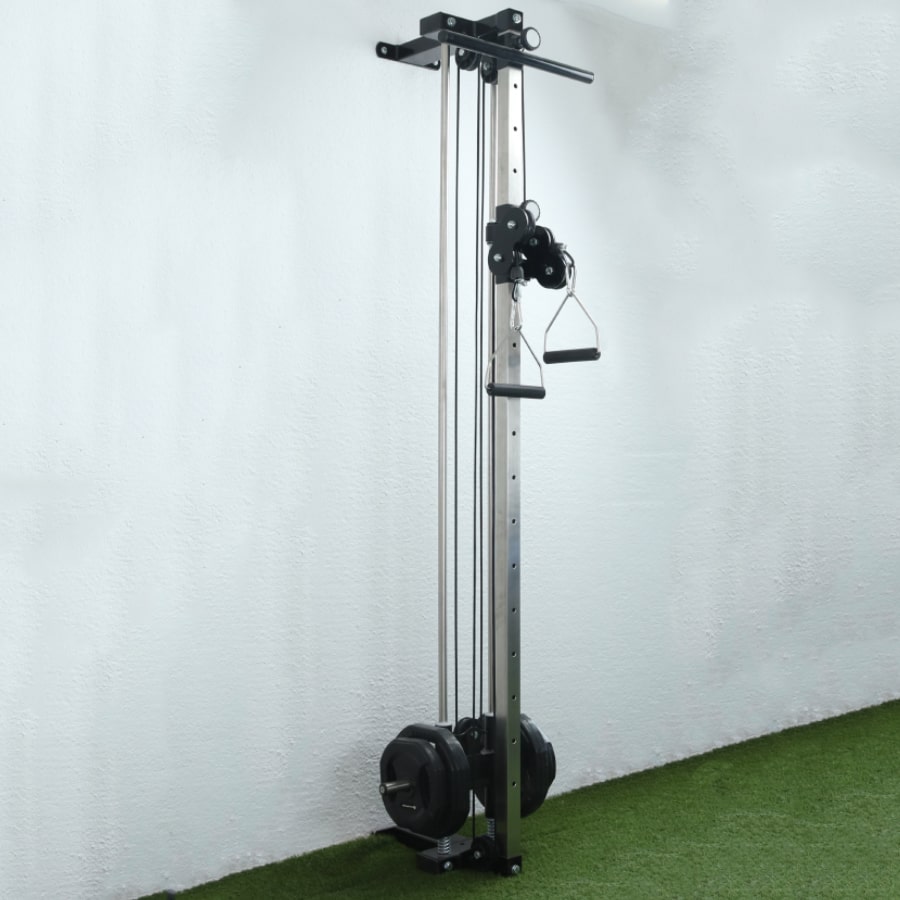 [/vc_column_text][vc_column_text]La polea es un complemento perfecto para nuestro jaula de potencia plegable e incluso para el resto de modelos de jaula que fabricamos, ya que permite añadir multitud de opciones a tus ejercicios en casa o en el gym. Se puede colocar también con anclaje a pared, sin necesidad de jaula, y permite trabajar tren inferior y tren superior de manera muy variada, pues gracias a su doble salida, a su regulación de altura y a sus distintos agarres, tendrás un completo gimnasio en muy poco espacio para tus trabajos de musculación o circuitos cross training.