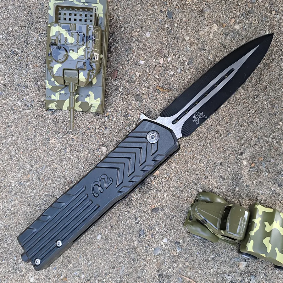 Navaja semiautomatica color negro con rompe vidrio