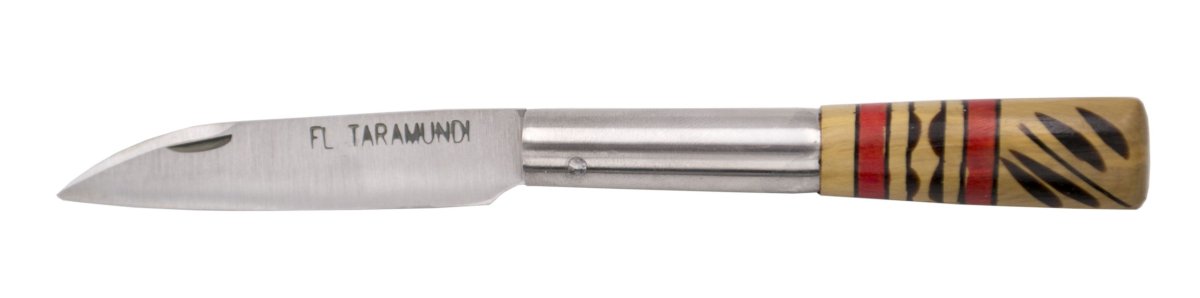 Navaja Taramundi Artesanal TR-10, fabricación española, mango de madera de boj decorada, hoja de acero inox 420 de 7,2 cm. Ref. TR-10