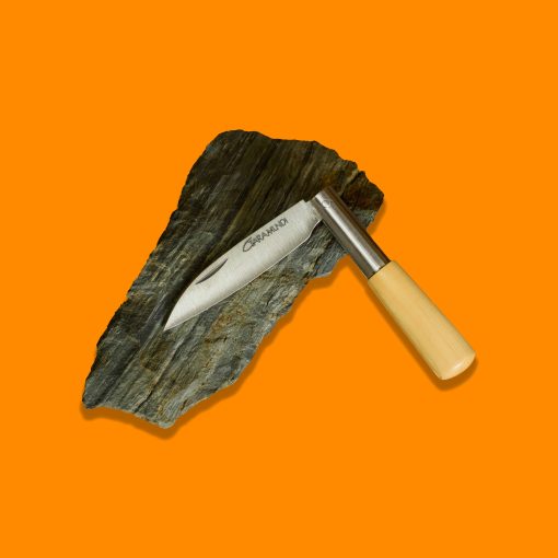 Navaja con hoja de 7 cm. en punta recta de acero inox. mova y mango de madera de boj.