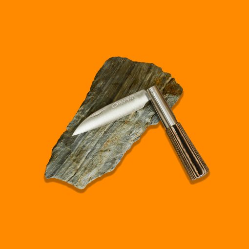 Navaja con hoja de 7,5 cm. en punta recta de acero inox. mova y mango de stable wood gris.