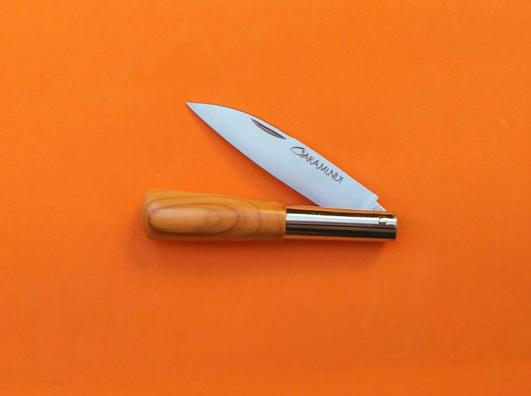 Navaja con hoja de 7 cm. en punta recta de acero inox. mova y mango de madera de tejo.