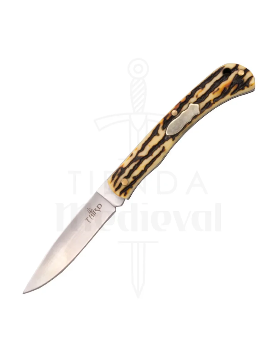 Navaja Third N21, hoja acero inox 420 de 6.8 cm, mango ABS imitación asta de ciervo. Ref. N21