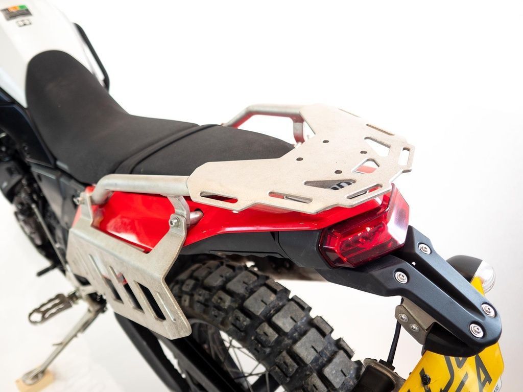 Parrilla trasera Yamaha Tenere 700 T7. Fabricada en aluminio de alta densidad y soldado al Tig. Disponible en aluminio natural o pintura al polvo en varios colores. Se trata de un porta bultos muy ligero y pequeño pero robusto. Es increíblemente ligero. Es muy fácil de instalar y se suministra en varios colores.