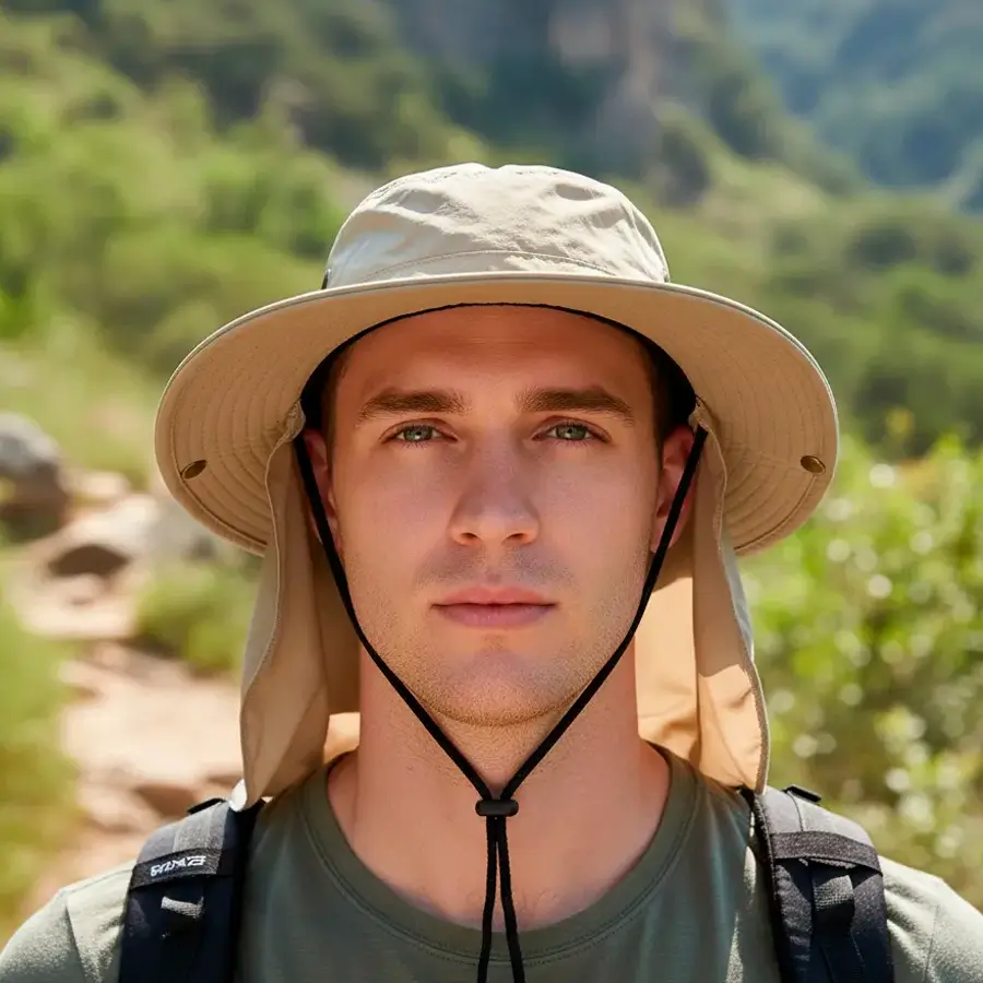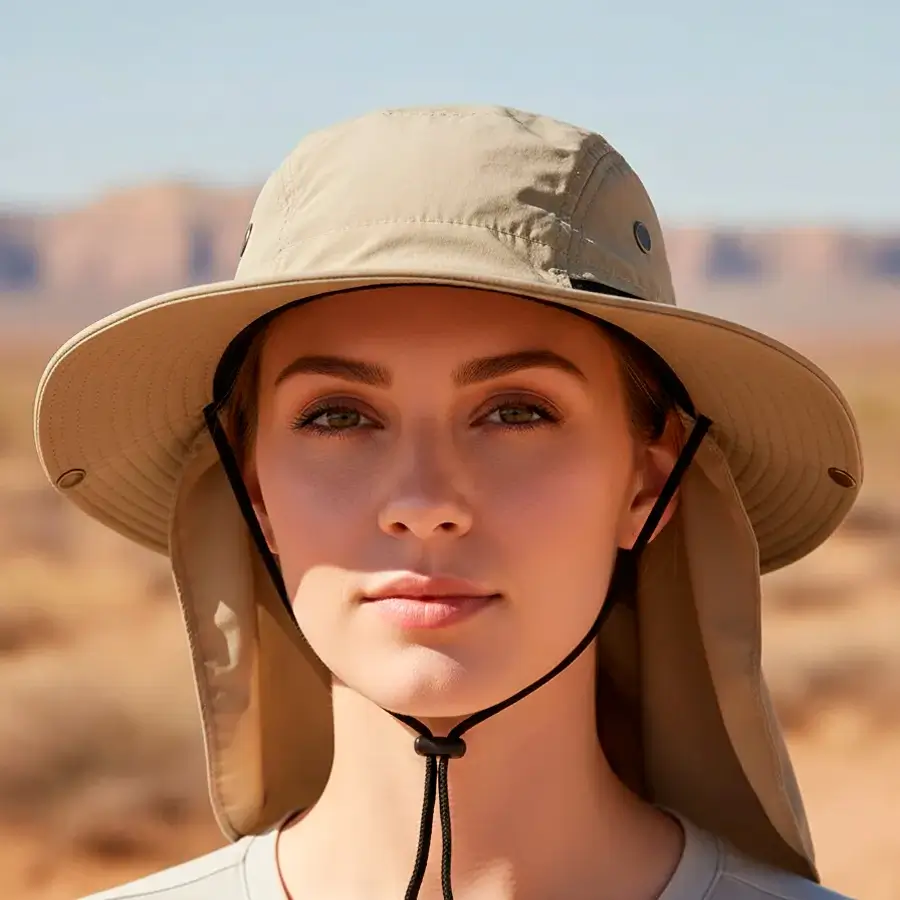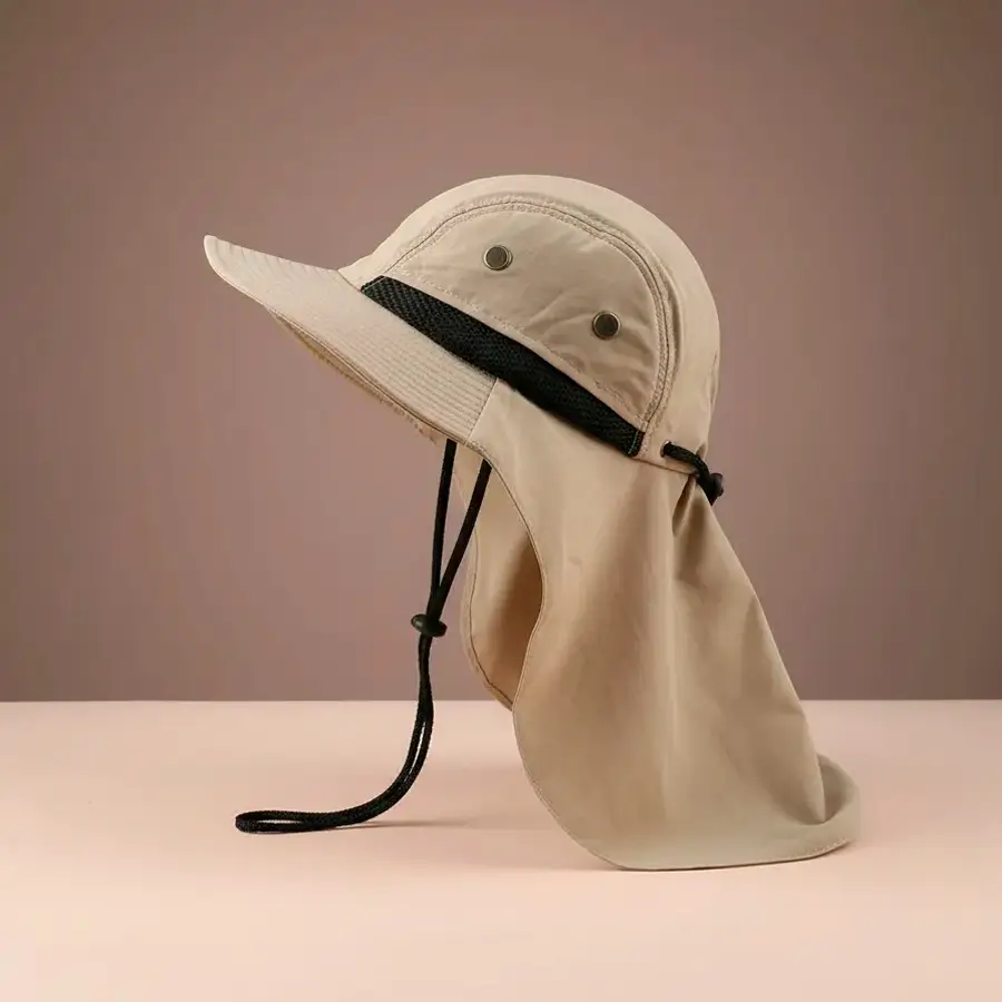 La ala ancha y la solapa de cuello extendida ofrecen protección total contra el sol y los rayos UV, evitando quemaduras y molestias durante la exposición prolongada. Además, su diseño plegable y portátil permite guardarla fácilmente en tu mochila o bolsillo.