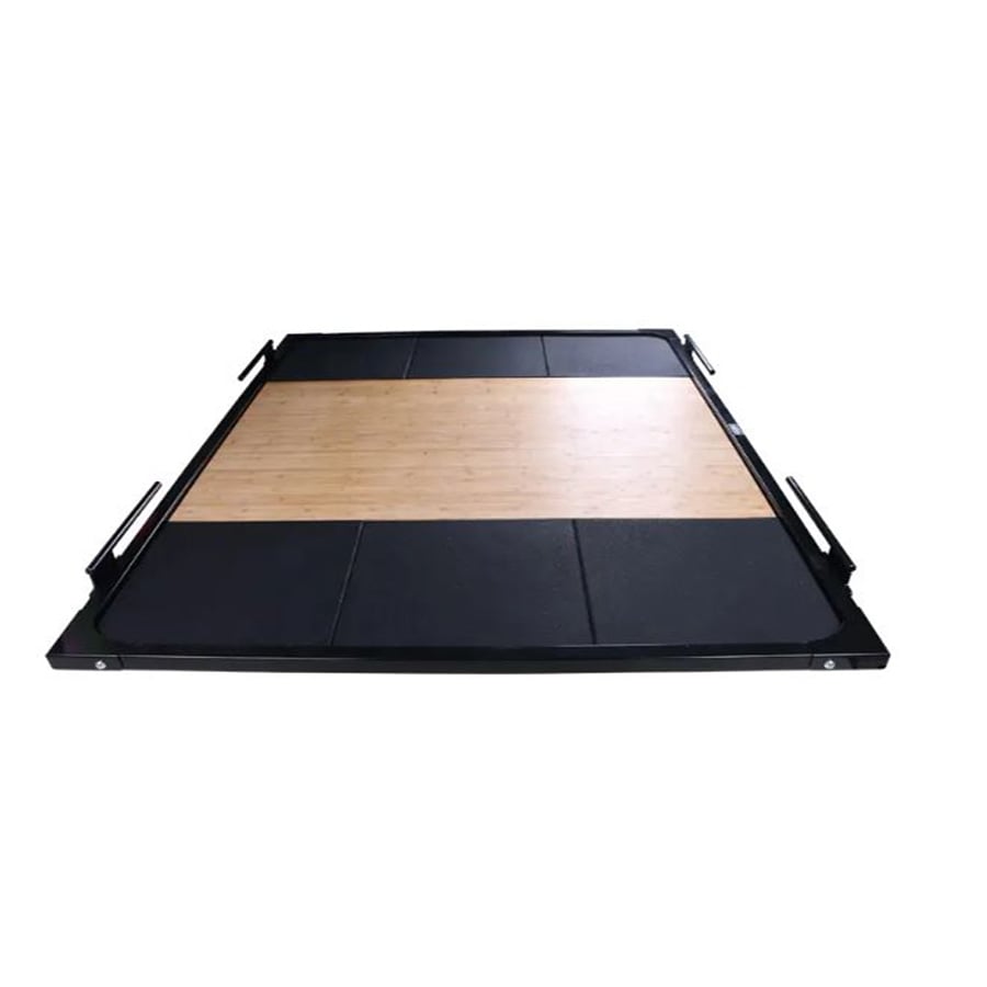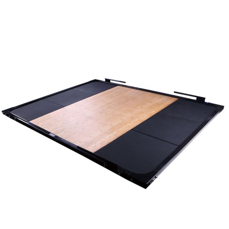 [/vc_column_text][vc_column_text]Nuestra plataforma de halterofilia cuenta con una franja central de madera y laterales de caucho de alta densidad. Su instalación es muy sencilla y su uso garantiza el máximo confort al atleta. Es antideslizante y no presenta olor. Tiene las siguientes especificaciones: