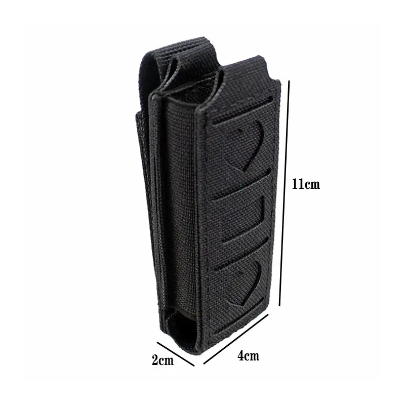 pequeñas. El pequeño tamaño de 11 x 4 cm/4,33 x 1,57 pulgadas se puede instalar en el cinturón de seguridad, el cinturón de tiro o el sistema MOLLE.